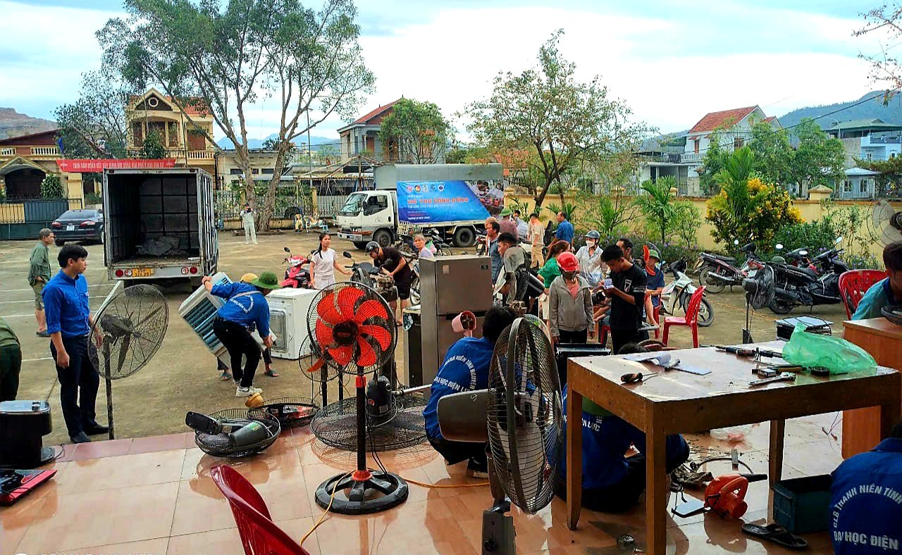 | Trường Cao đẳng Công nghiệp Huế hỗ trợ sửa chữa thiết bị gia dụng bị hư hỏng do ngập lụt ở miền Bắc trong năm 2024 |