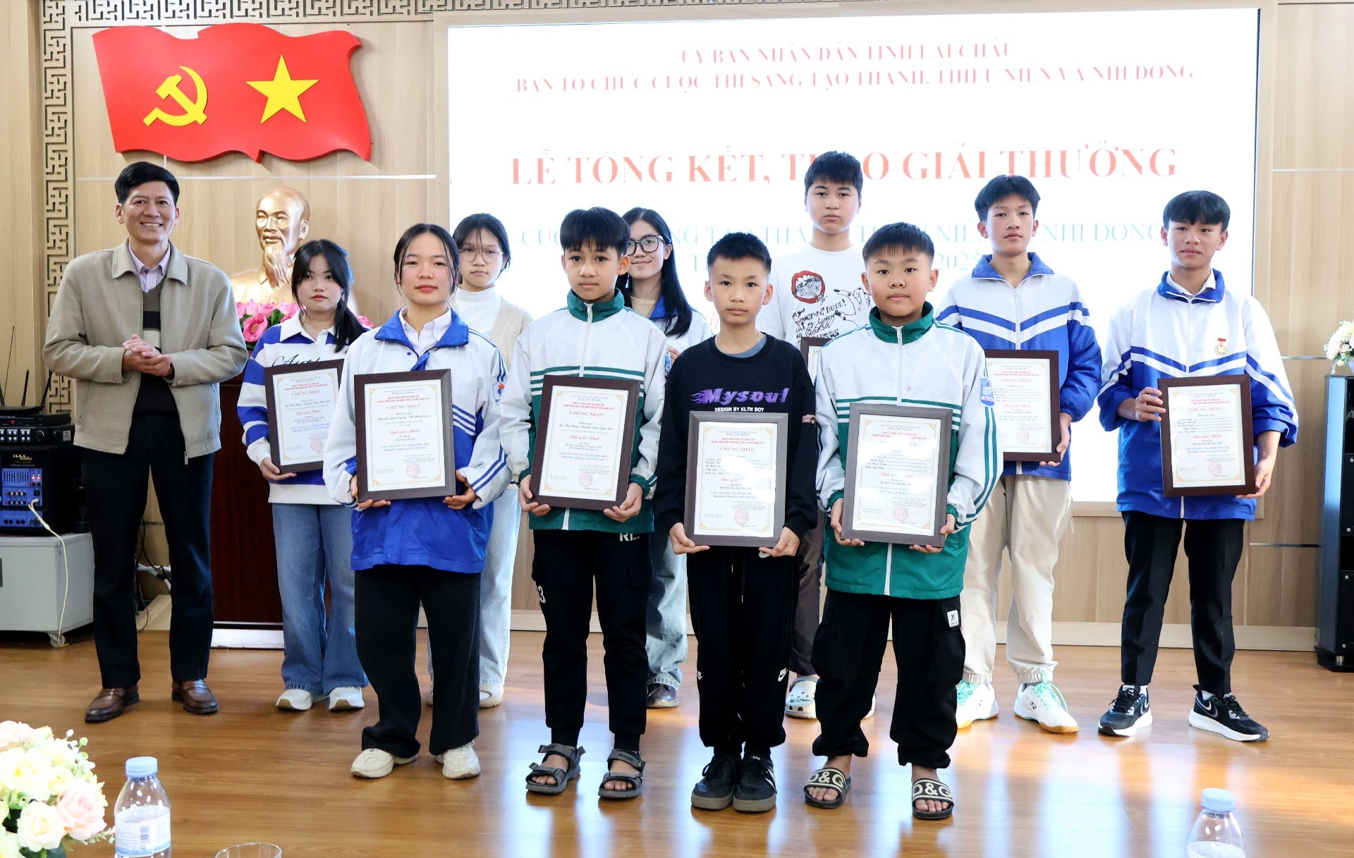 Vid ceremonin delade tävlingens organisationskommitté ut priser till de vinnande författarna och grupperna, varav tre specialpriser gick till ämnena: "Programvara för hälsoövervakning i skolan med tillämpning av artificiell intelligens AI" av författargruppen: Tan Huyen Trang - Klass 12C1, Lai Chau provinsiella internatskola för etniska minoriteter; Giang Thi Ngoc Anh - Klass 12C1, Lai Chau provinsiella internatskola för etniska minoriteter inom området informationsteknologisk programvara; "Smart klassrum i den digitala tidsåldern" av författargruppen Dinh Thai Nghiep - Klass 7A5, Tan Phong Secondary School, Tan Phong Ward; Le Truong Giang - Klass 7A5, Tan Phong Secondary School, Tan Phong Ward; Hoang Le Hai Nam - Klass 8A1, Doan Ket Secondary School, Doan Ket Ward och "Påminnelsebord vid för nära läsning" av författargruppen Vo Kim Ngan - Klass 7A3, Tan Phong Secondary School, Tan Phong Ward inom området lärverktyg.