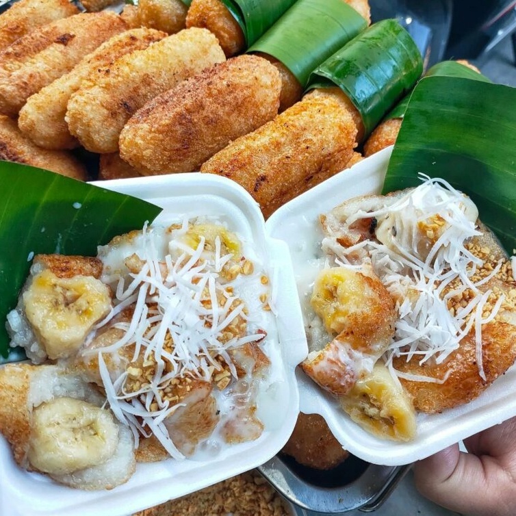 Färska bananer lindas in i klibbigt ris och grillas direkt på träkol tills skalet är lätt förkolnat, vilket ger en attraktiv arom. När kakan är tillagad ringlas den med rik kokosmjölk, beströs med rostade jordnötter, riven kokos och ibland sesamfrön för att förstärka den fylliga smaken.