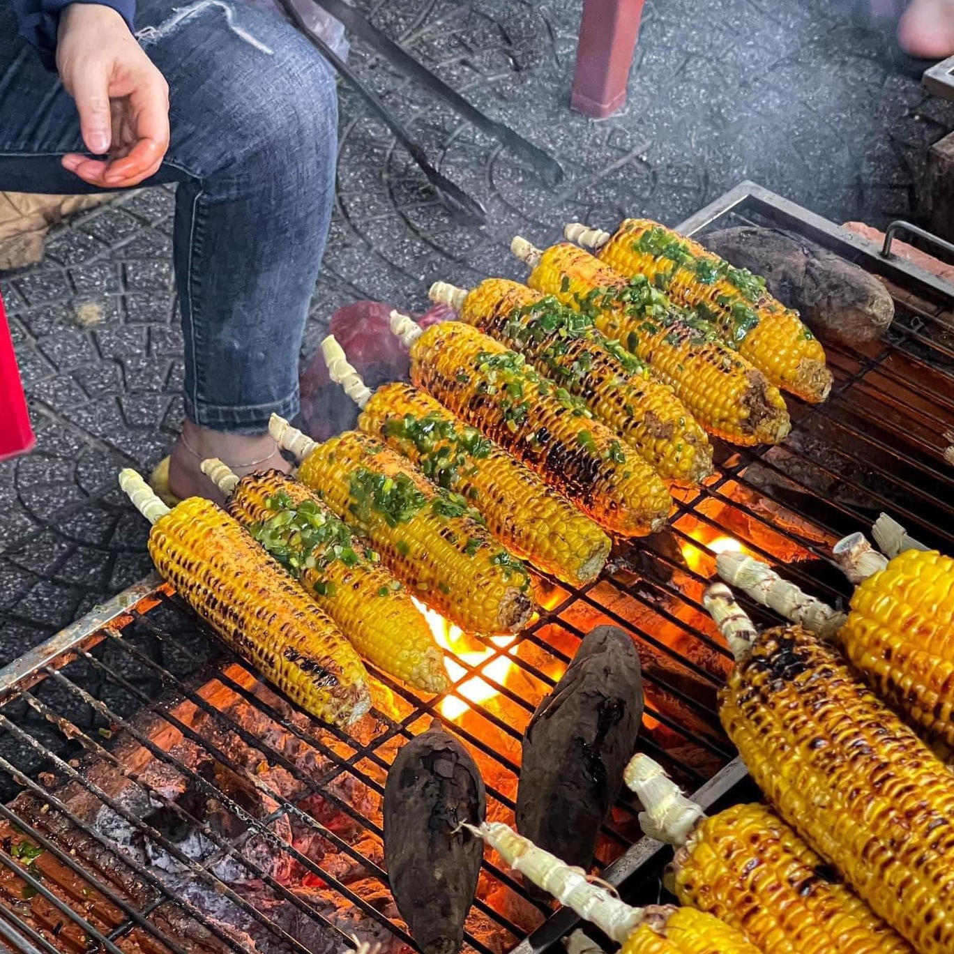 Att gå runt på gatorna i den tidiga kylan på säsongen och hålla i en varm majskolv värmer händerna; när man tar en tugga kan man höra majskornen knastra lätt, lagret av riven ost blandat med lukten av kolrök blir mer uppenbart. Om du vill ha mer smak kan du be om mer smör, salt, chili och malen peppar.