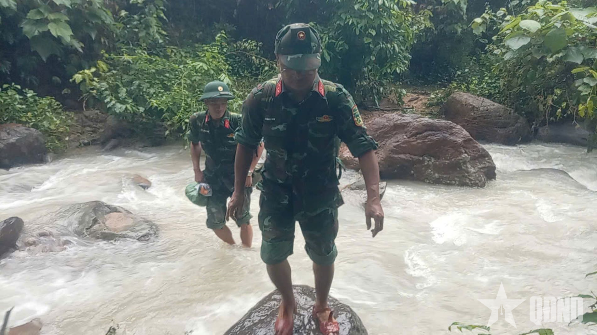 Styrkorna marscherade 30 km, mer än 9 timmar, genom vägar mellan byarna, korsade Song Bung vattenkraftssjö med båt och gick sedan genom skogen i nästan 2 timmar för att nå byn Topo.