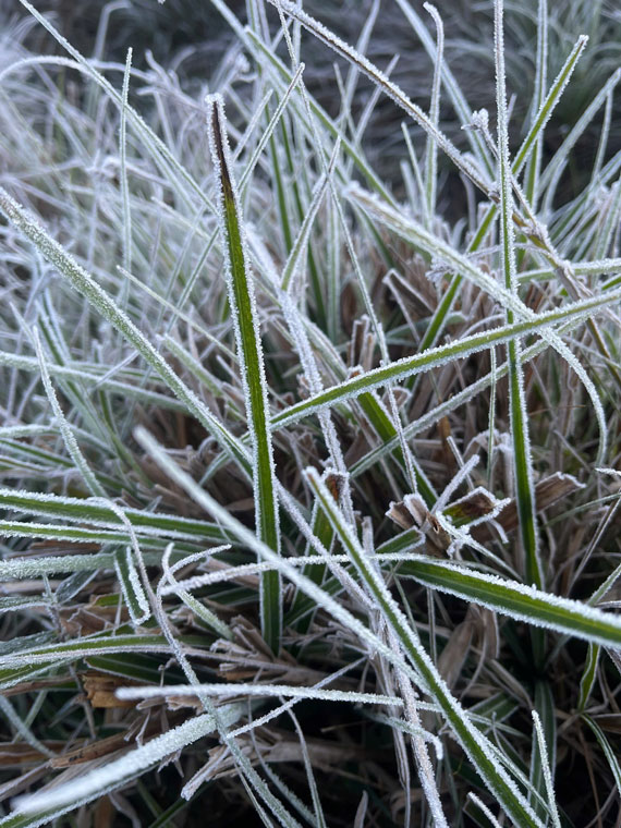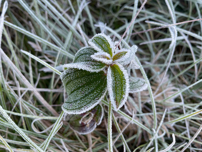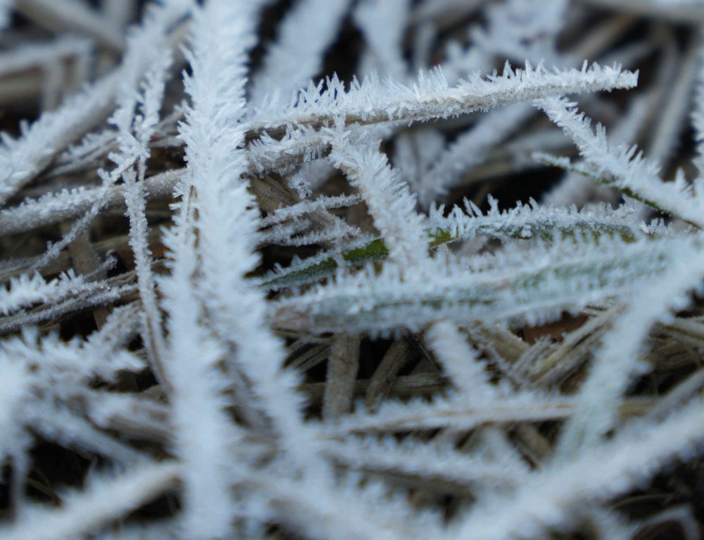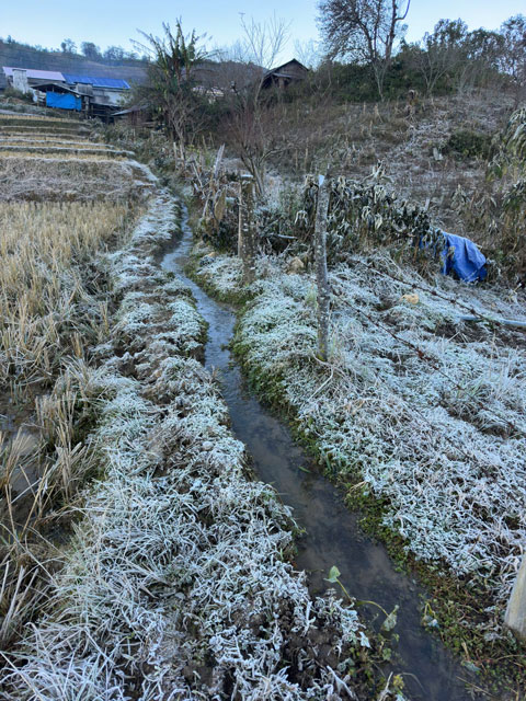 Enligt människor i Y Ty-kommunen täckte frosten träd och gräs... tills solljuset steg och de började smälta. Foto: Duy Dung
