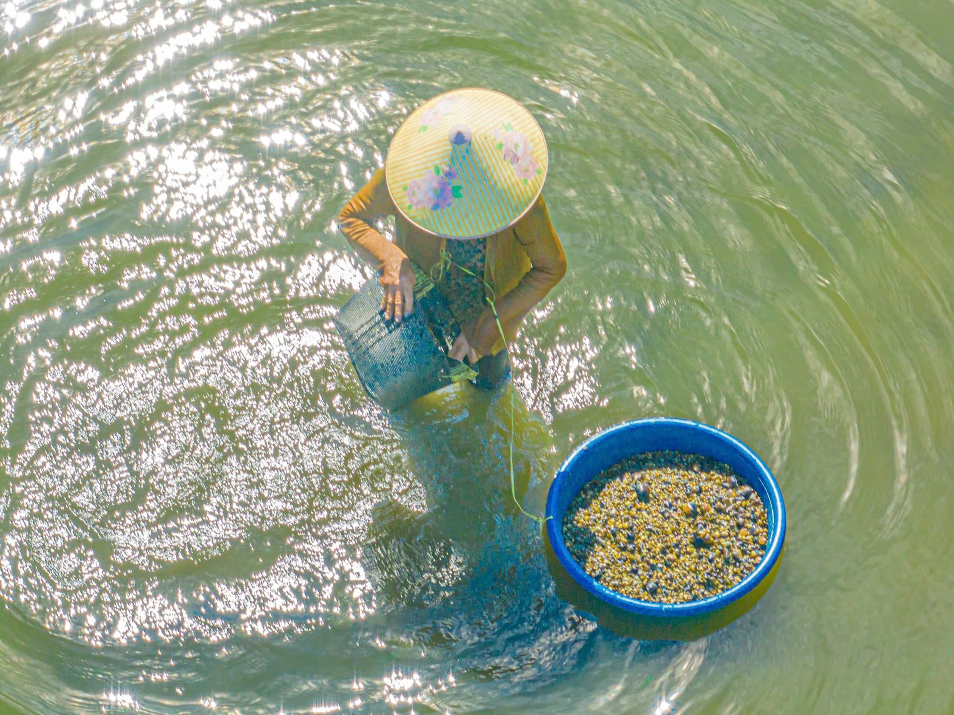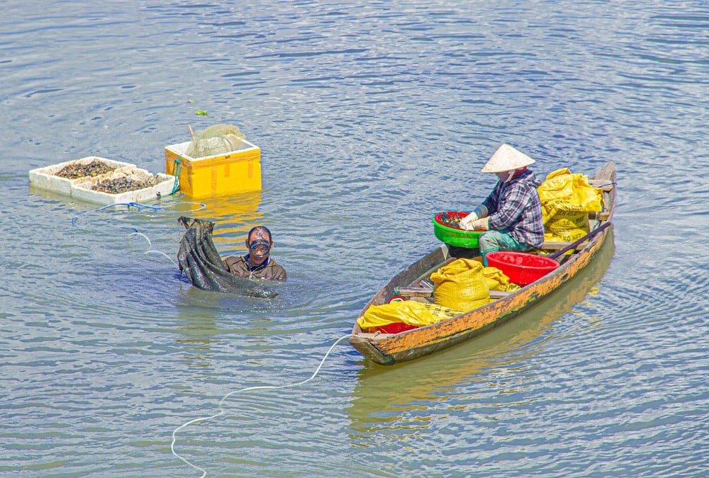 Panoramavy över byggarbetsplatsen för att renovera, utöka och höja Bien-bron, en viktig flaskhals i återupplivningsprojektet för Co Co-floden.Många företag är intresserade av att investera i biljonprojekt längs Co Co-floden, särskilt Kim Cuong Island-projektet (Hoa Xuan) nära slutet av Co Co-floden, som för närvarande är den mest eftertraktade platsen.Floden rinner genom det natursköna kulturarvet Ngu Hanh Son och bidrar till att försköna bergens och flodernas charmiga skönhet här.Bai Dai-bron bidrar till att försköna området, möta trafikbehov och främja ekonomisk utveckling på båda sidor om floden Co Co.Co Co-flodens kulturella skönhet bevaras och återskapas varje år genom många enastående kulturella aktiviteter som lockar inhemska och utländska turister.Livet i Co Co-floden kommer att direkt påverka en del av befolkningen, särskilt fiskebyarna som är beroende av att fånga fisk och skaldjur längs Co Co-floden.Folk håvar musslor manuellt i floden.Flodens bördighet har fostrat generationer av människor som bor längs Co Co-floden.