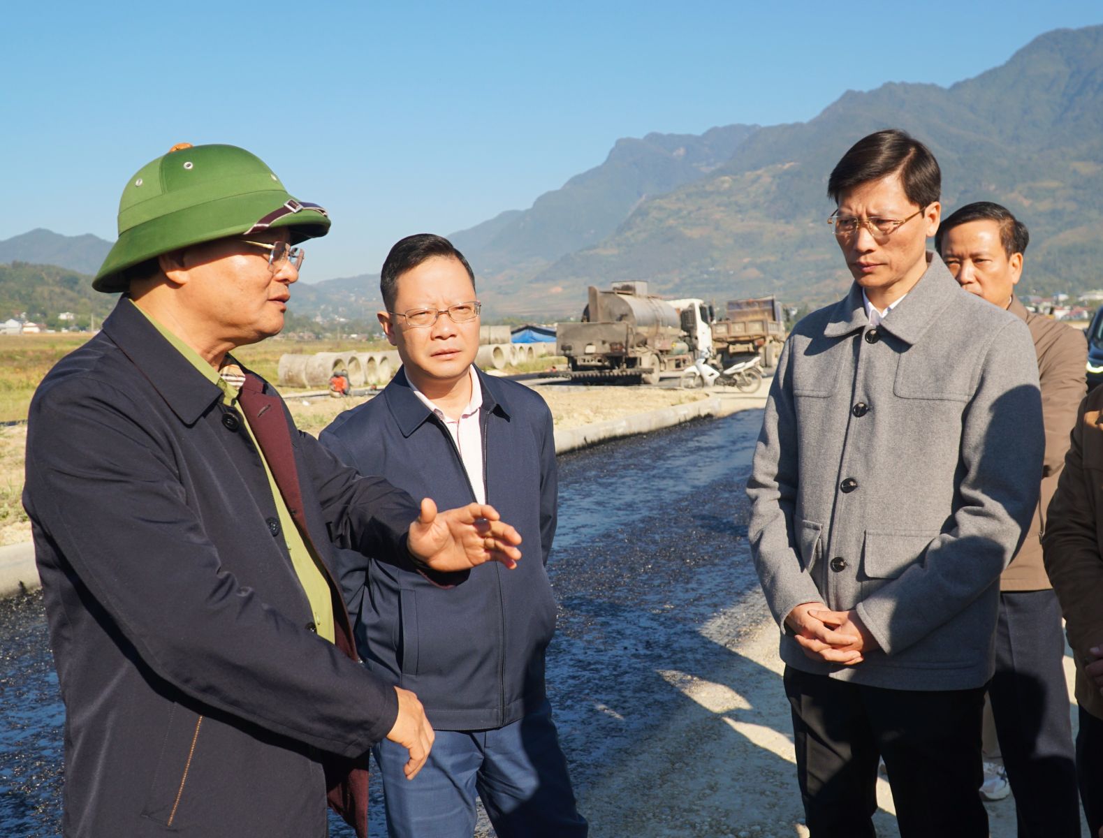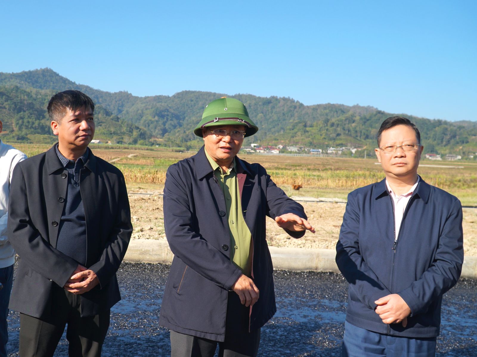 Provinspartiets sekreterare och arbetsdelegationen inspekterade vägprojektet från staden Tam Duong till vägen som förbinder staden Lai Chau med motorvägen Noi Bai- Lao Cai . Han lyssnade på berörda enheters rapporter om projektets genomförandestatus och svårigheter.