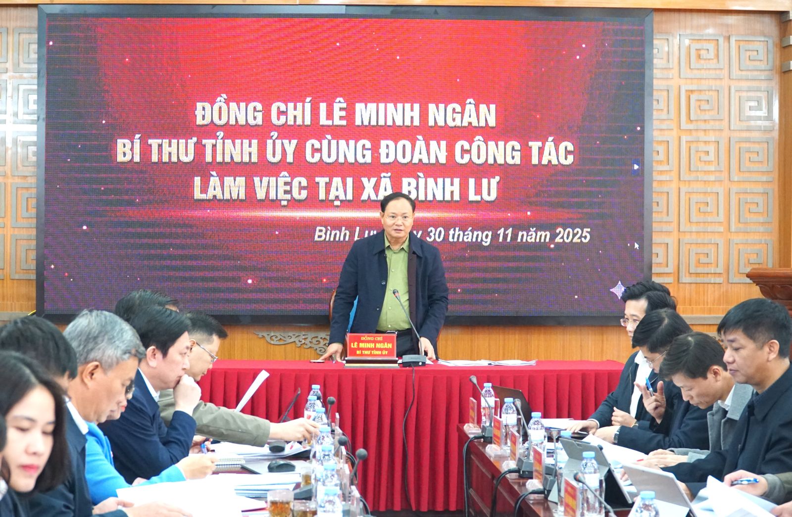 Vid avslutningen av arbetsmötet uppskattade Le Minh Ngan, sekreterare för den provinsiella partikommittén, det förberedande arbetet och de resultat som partikommittén och Binh Lu kommuns regering hade uppnått. Sekreteraren för den provinsiella partikommittén höll i princip med de åsikter som uttryckts av medlemmarna i arbetsgruppen angående Binh Lu kommun. Baserat på innehållet som rapporterats och rekommenderats av Binh Lu kommun, bad sekreteraren för den provinsiella partikommittén kommunen att fokusera på att grundligt sprida och sprida partikongressernas policyer och resolutioner på alla nivåer, särskilt de fyra nyckelresolutioner som Binh Lu kommun hade föreslagit.