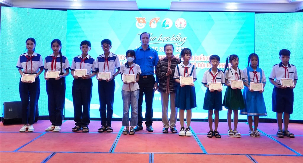 Organisationskommittén delade ut 45 Vu A Dinh-stipendier till studenter från etniska minoriteter; och 200 stipendier från klubben "För den älskade Hoang Sa - Truong Sa" till barn till gränsvakter, studenter från missgynnade fiskefamiljer och studenter från kust- och ökommuner.