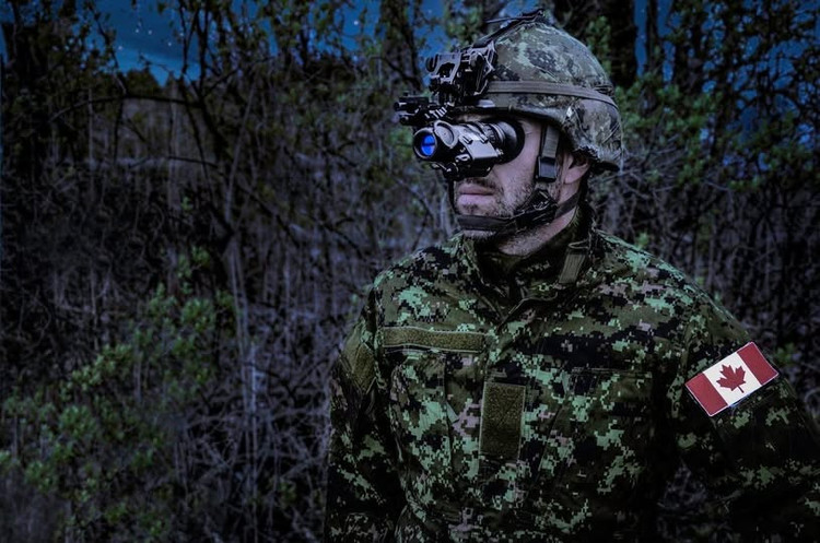 Kanadensisk militärpersonal använder mörkerkikare i tjänst. Foto: CAF