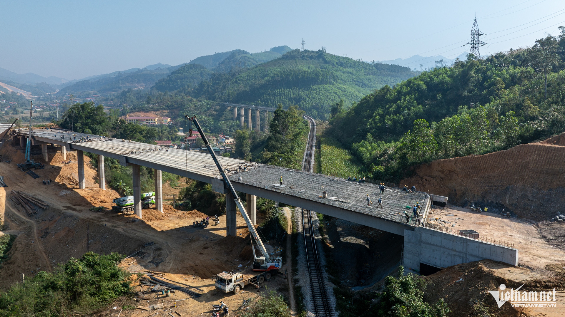 Motorvägsprojektet Huu Nghi Border Gate – Chi Lang har totalt 38 broar. Enbart broklustret vid Km41+450 – Km41+825 – Km42+825 (kommunen Nhan Ly) är över 1 km långt, och i mitten av december hade byggnadsarbetare bråttom att färdigställa brobanan.