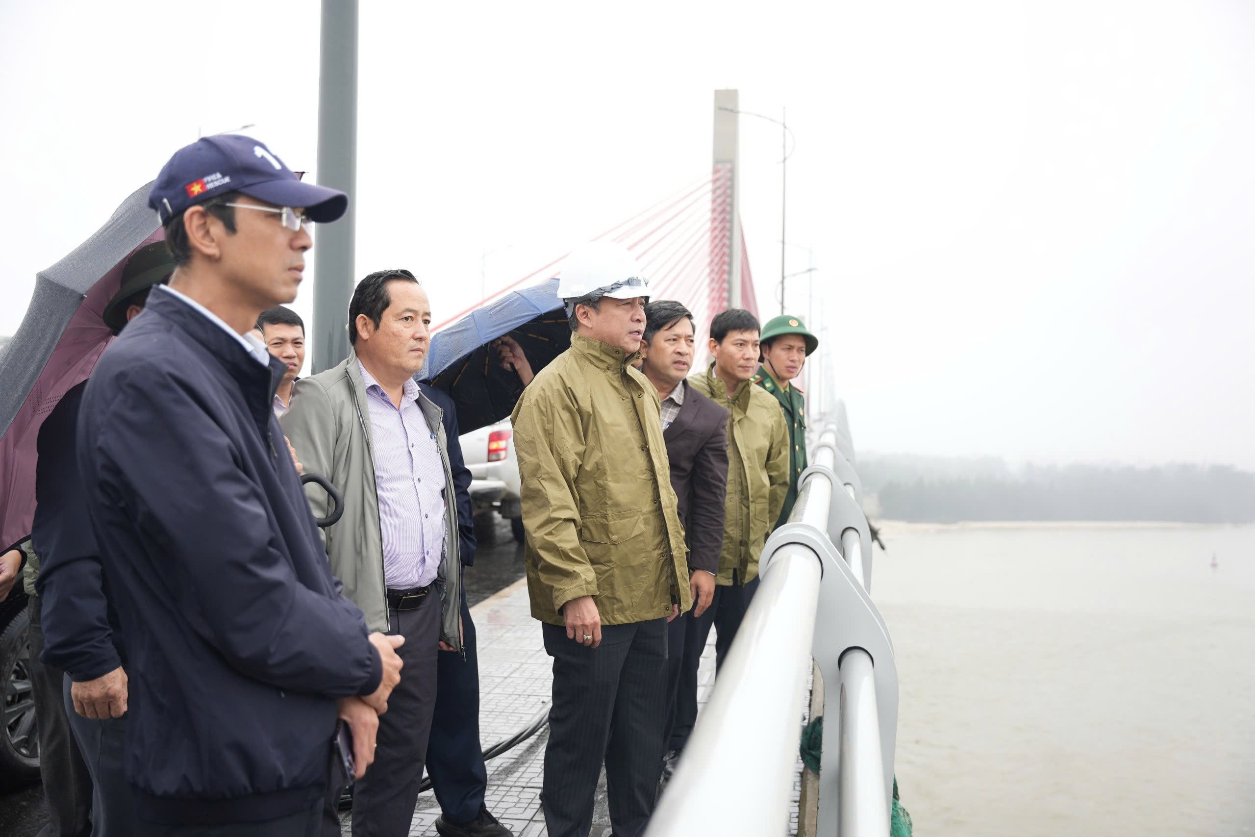 | Biträdande sekreterare för stadsfestkommittén och ordförande för stadens folkkommitté, Nguyen Khac Toan (tredje från vänster), inspekterar området runt Thuan Ans hamnöverfart. |