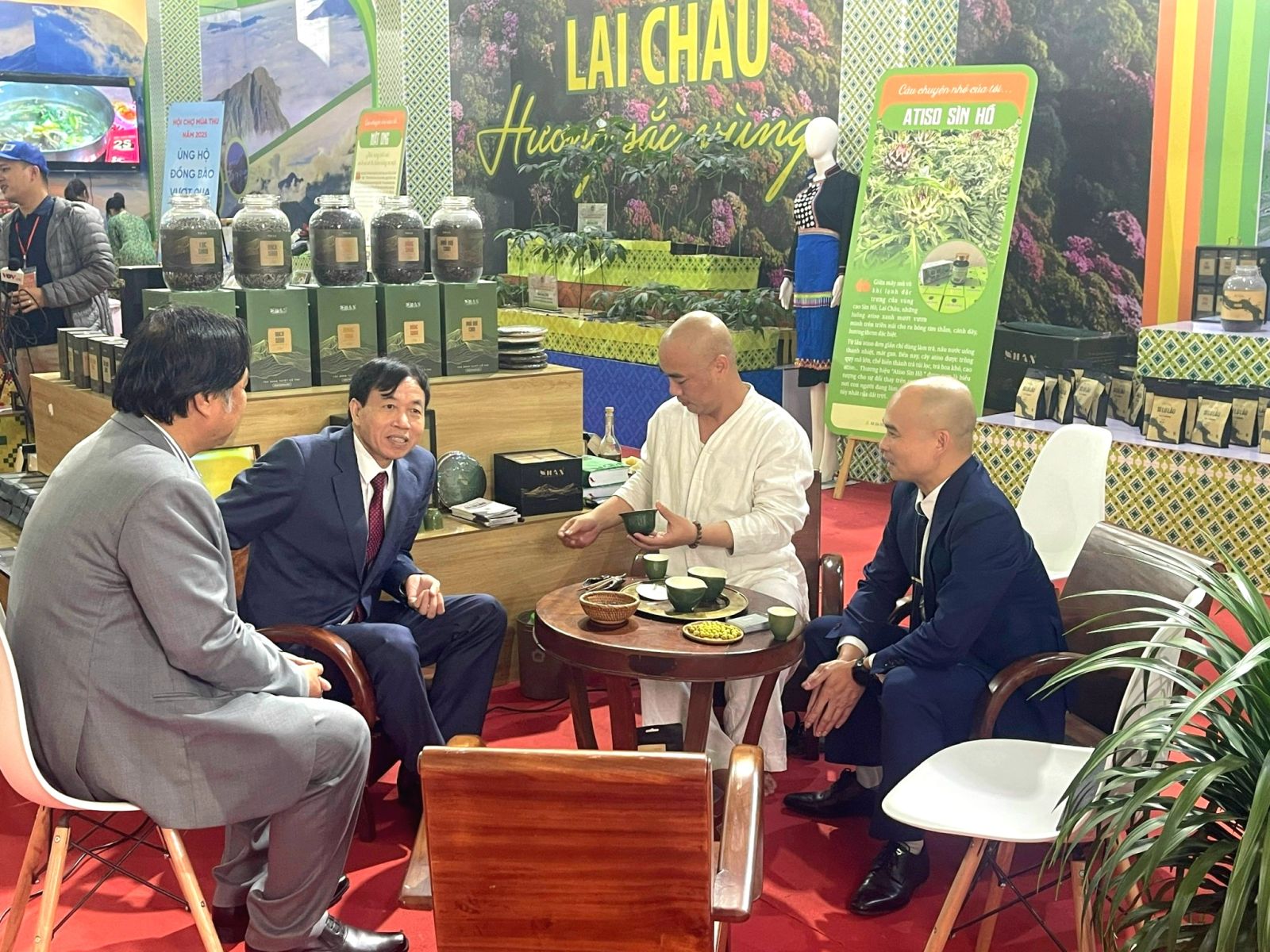 Ordföranden för Lai Chaus provinsiella folkkommitté, Le Van Luong, och den provinsiella delegationen deltog i mässans öppningsceremoni och besökte Lai Chaus provins monter på mässan.