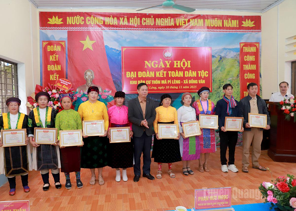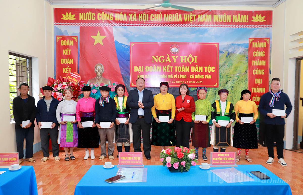 Vid detta tillfälle delade det provinsiella Röda Korset ut 50 gåvor, vardera värda 1 miljon VND, till 50 hushåll i byn Ma Pi Leng; Dong Van kommuns folkkommitté delade ut certifikatet Kulturfamilj 2025 till hushållen i byn.