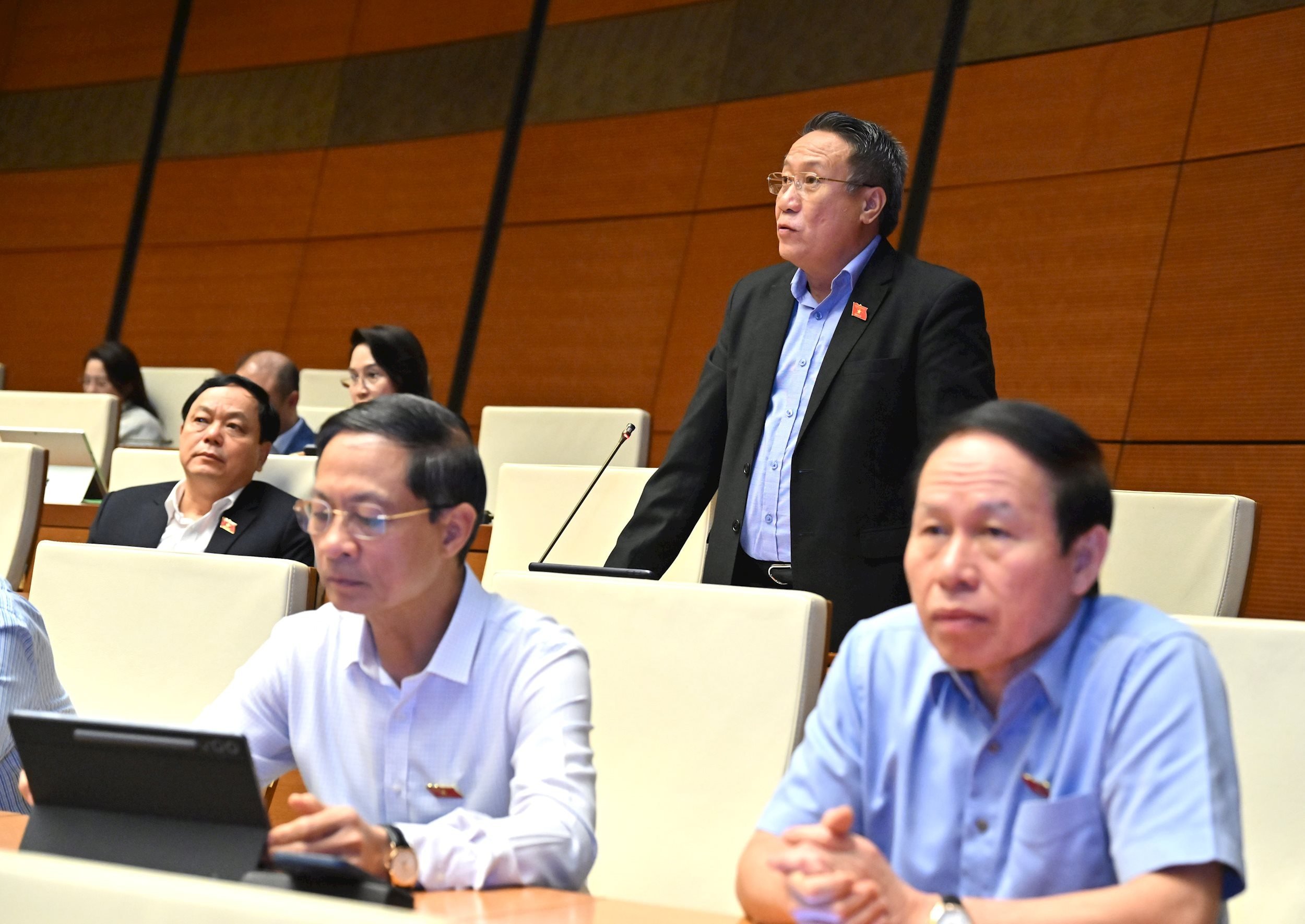 Delegaten Tran Van Tien påpekade också att statens budgetintäkter fortfarande innehåller många inkomstposter med låg eller mycket låg tillväxttakt, såsom: beräknade intäkter från markanvändningsavgifter; intäkter från utdelningar, vinster efter skatt, skillnaden mellan statsbankens intäkter och utgifter, intäkter från råolja, intäkter från import-exportverksamhet...