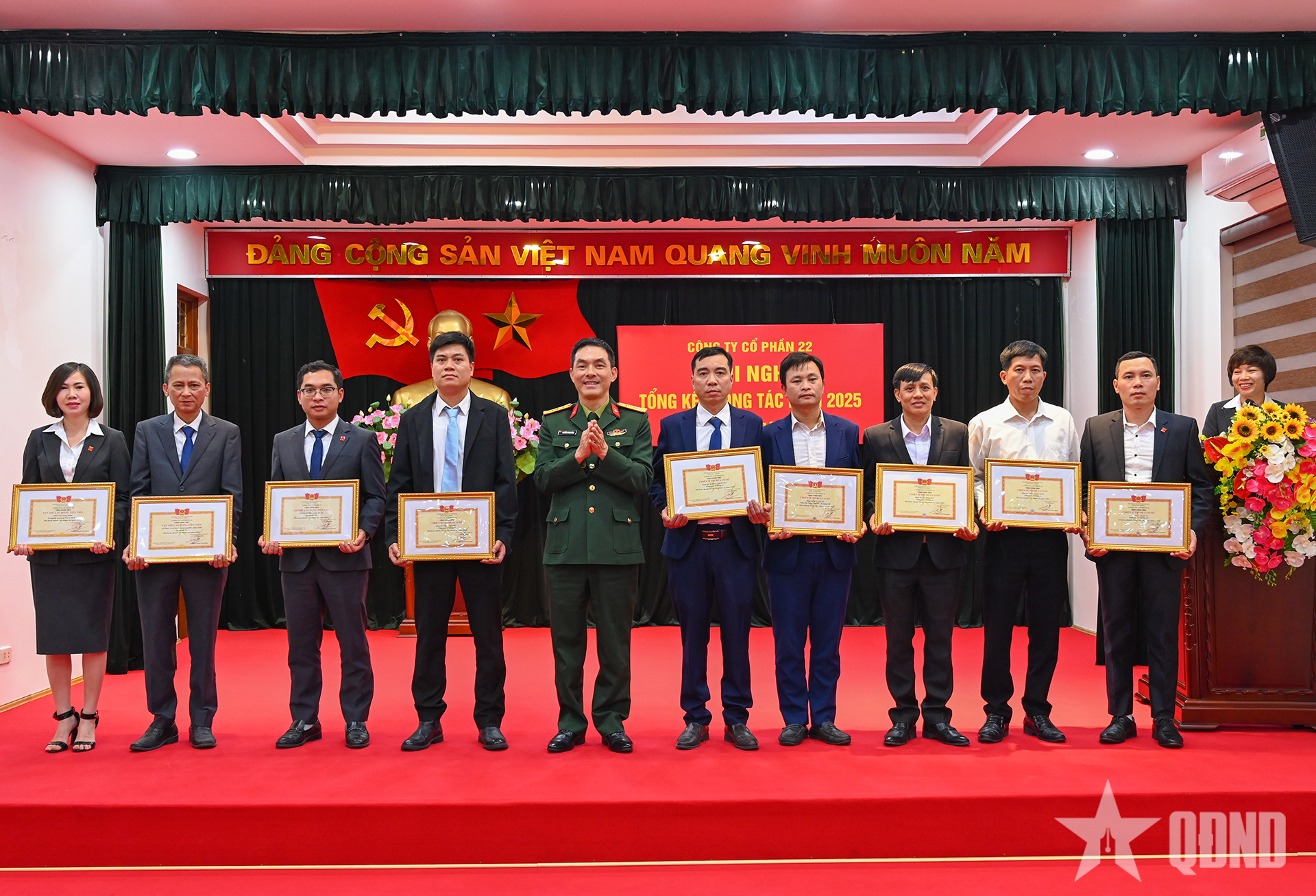 Överstelöjtnant Nguyen Trung Dung, styrelseordförande för Joint Stock Company 22, tilldelade personer med enastående prestationer år 2025 utmärkelser. |
