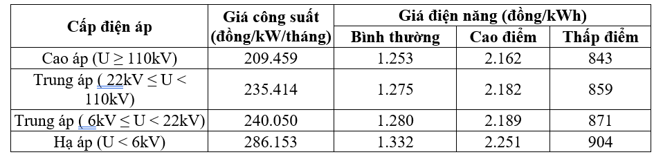 + C p : Är enhetspriset för kapacitet, beräknat i VND/kW/månad.