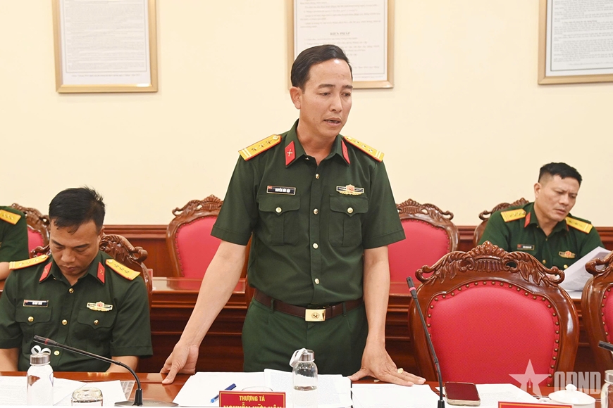 Överste Nguyen Dinh Khiem, ständig medlem av partikommittén och biträdande politisk kommissarie för Quang Ninhs provinsiella militärkommando, talade vid konferensen. |