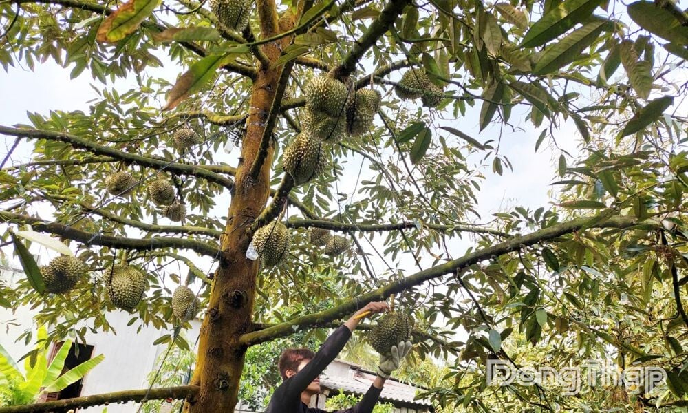 För närvarande går durianodlare i Dong Thap- provinsen in i högsäsong för att skörda durian under lågsäsong. Även om durianpriserna ständigt fluktuerar gör odlarna fortfarande en betydande vinst.