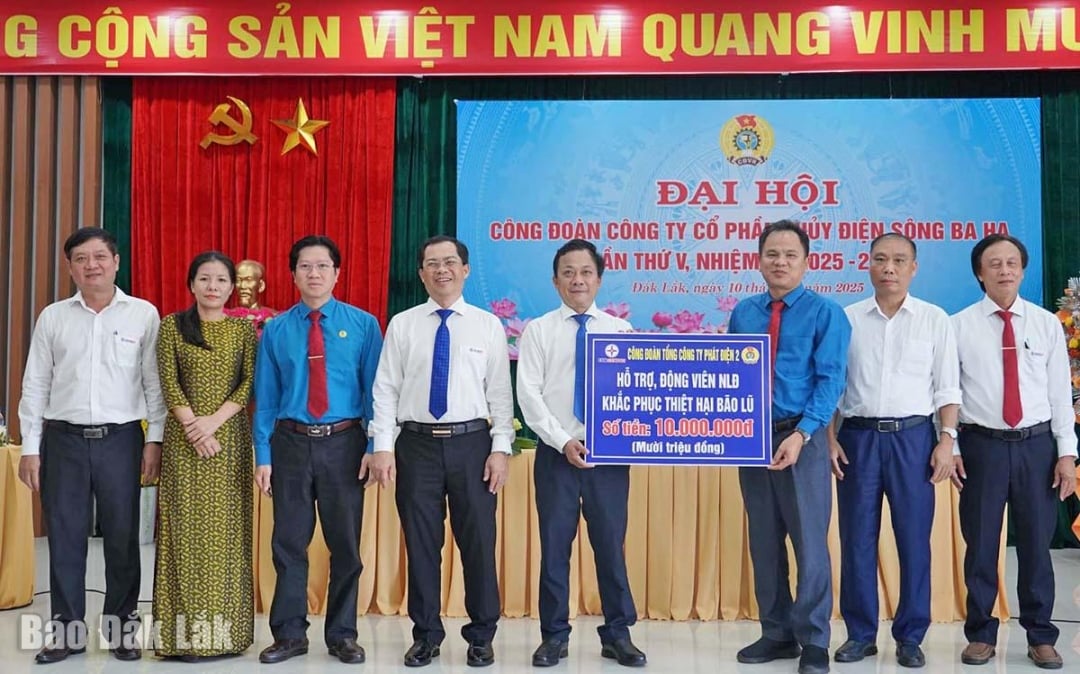 Vid detta tillfälle överlämnade fackföreningen Power Generation Corporation 2 10 miljoner VND till fackföreningen Song Ba Ha Hydropower Joint Stock Company för att uppmuntra arbetare att aktivt delta i att hantera storm- och översvämningsskador.
