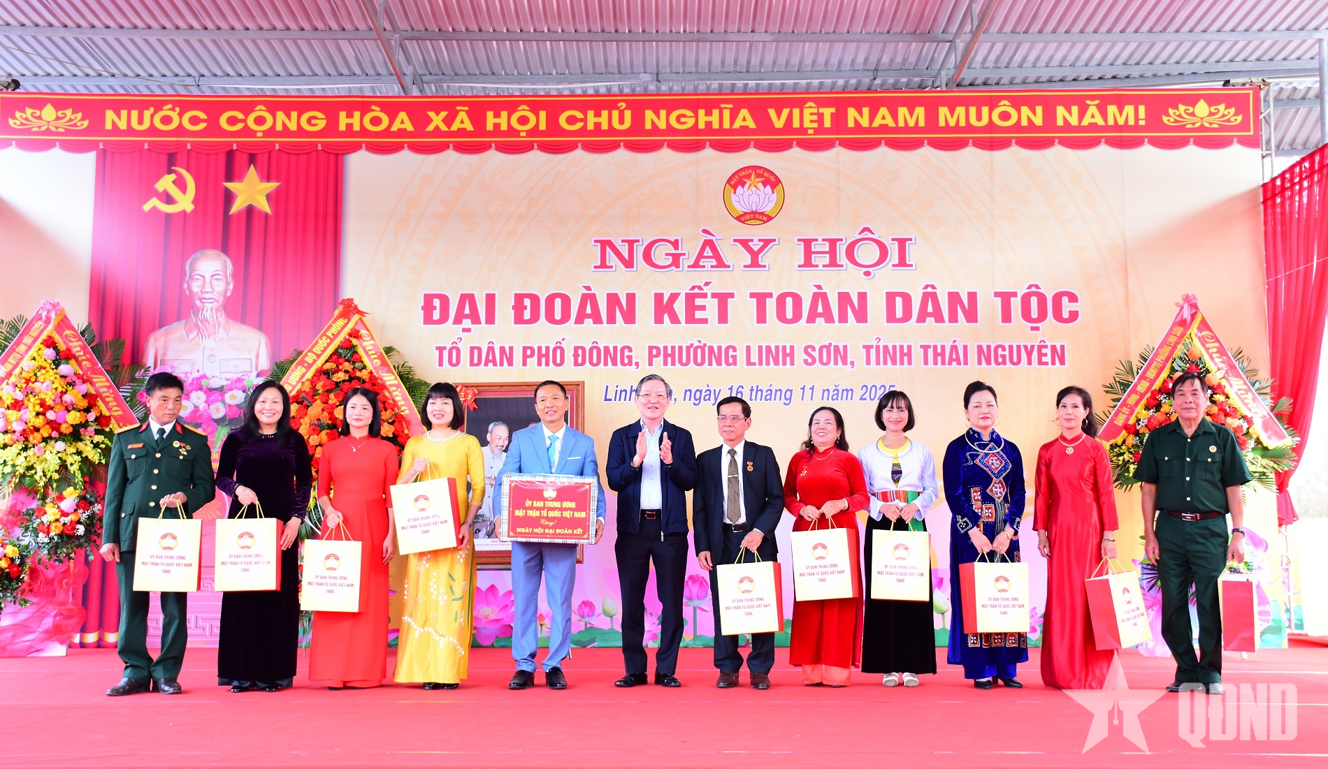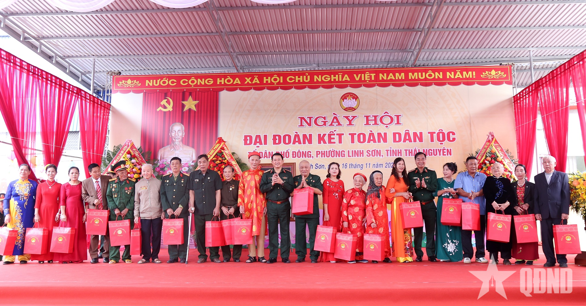 Centralkommittén för Vietnams fosterlandsfront överlämnade gåvor till bostadsgruppen Dong och 10 framstående familjer i bostadsområdet. Militärregion 1, kommando 86, Thai Nguyen-provinsen överlämnade gåvor till grupper, hushåll och individer i bostadsgruppen Dong och Linh Son-distriktet (Thai Nguyen-provinsen).