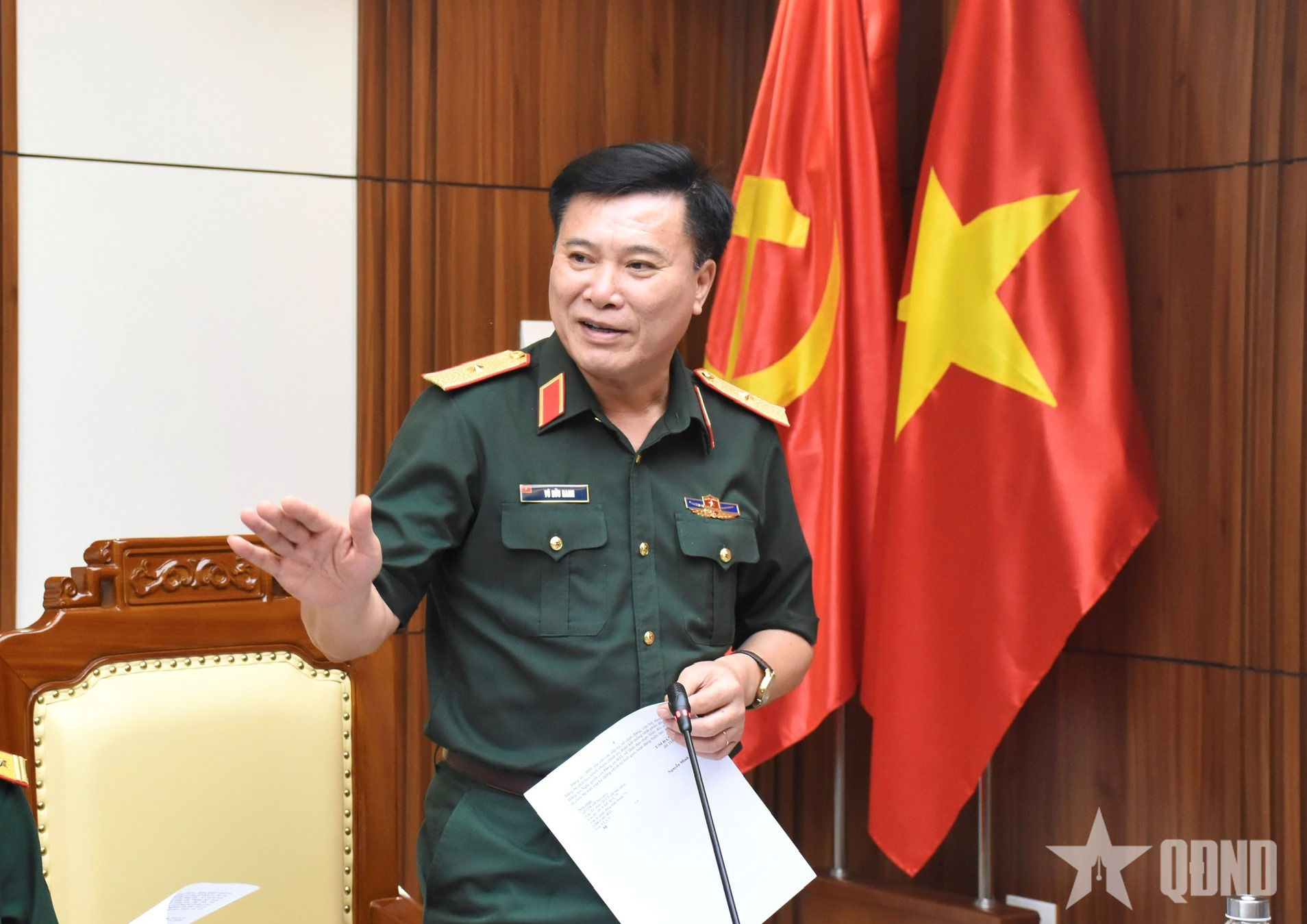 Generalmajor Nguyen Minh Thang, politisk kommissarie för kommando 86, ledde konferensen för att sammanfatta resolution nr 18-NQ/TW. |