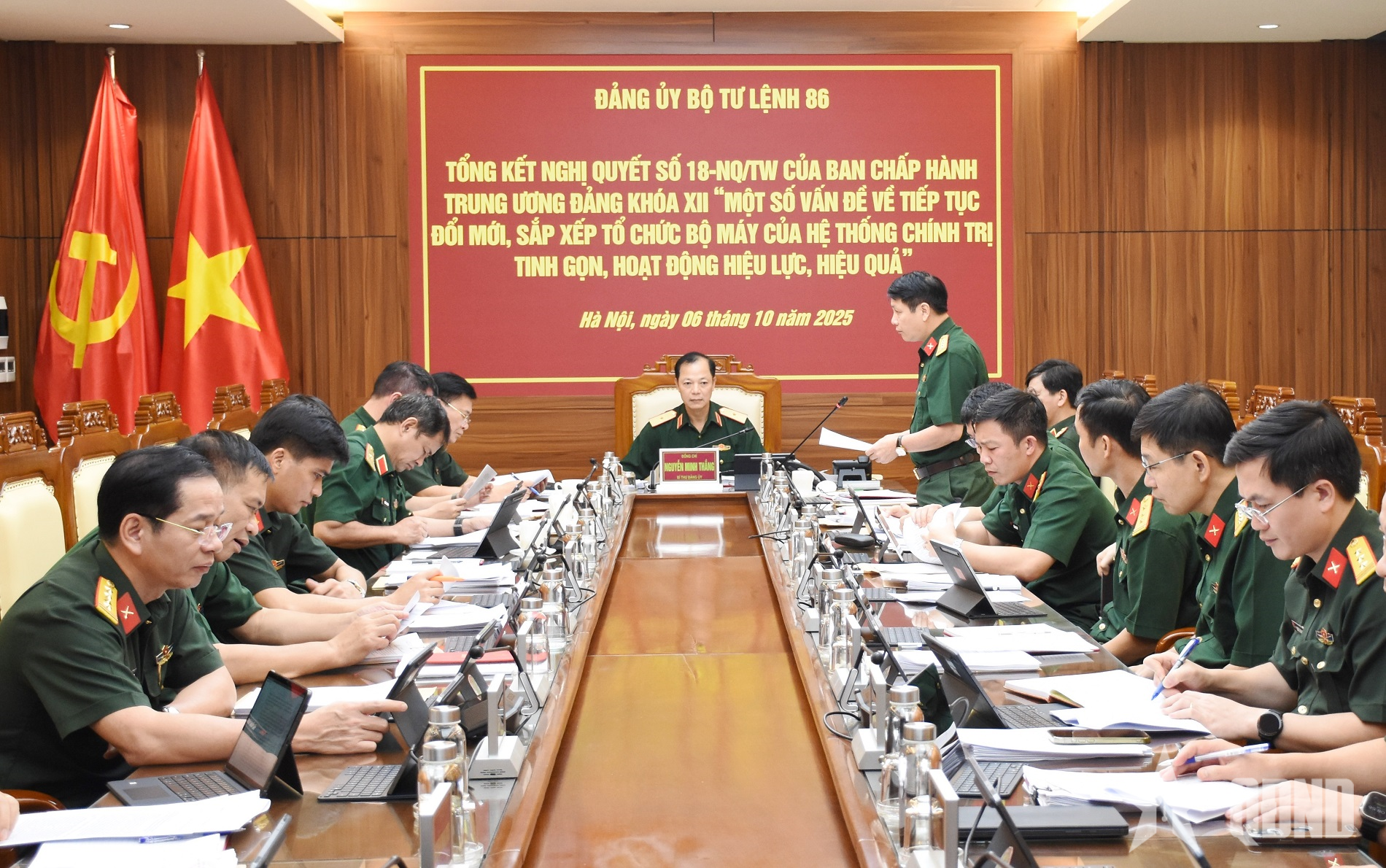 För att effektivt genomföra resolution nr 18-NQ/TW under den kommande tiden beslutade partikommittén för kommando 86 att fortsätta leda och styra det goda informations- och propagandaarbetet så att kadrer, anställda och soldater är tydligt medvetna om policyn att effektivisera det politiska systemets apparat och skapa hög enighet bland folket, kadrerna och partimedlemmarna. Granska och finslipa organisationen och personalen hos myndigheter och enheter inom kommandot och hela arméns cyberrymdsoperationsstyrka, för att säkerställa effektivisering, kompakthet, effektivitet och produktivitet.