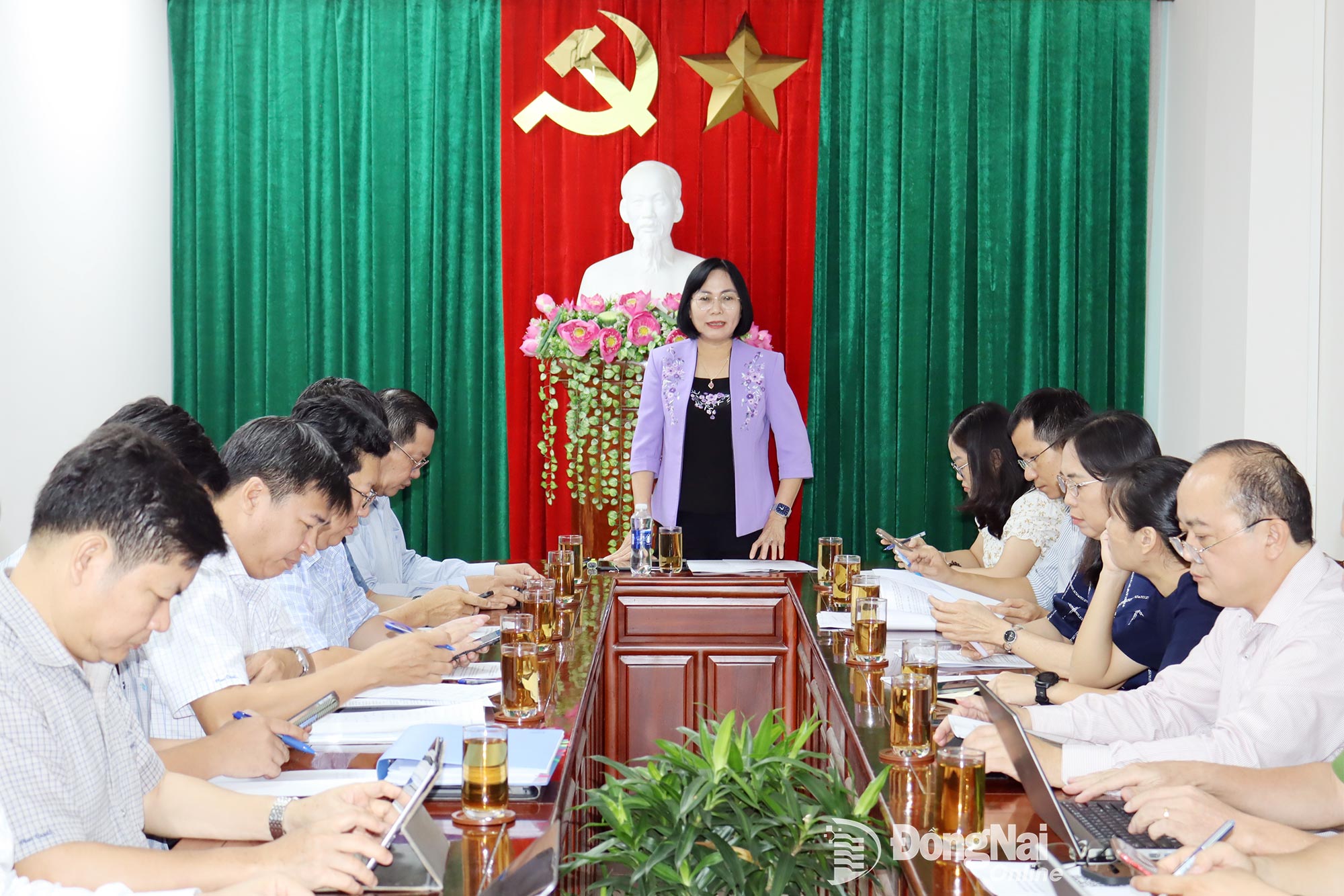 Medlem i provinsens partikommitté och vice ordförande för Dong Nais provinsiella folkkommitté, Nguyen Thi Hoang, höll ett tal vid mötet. Foto: Hoang Loc |
