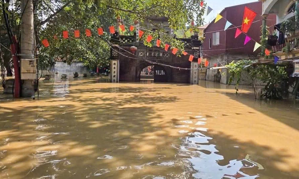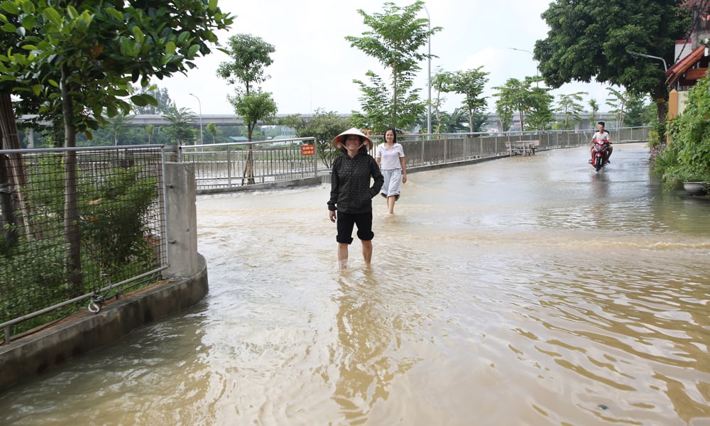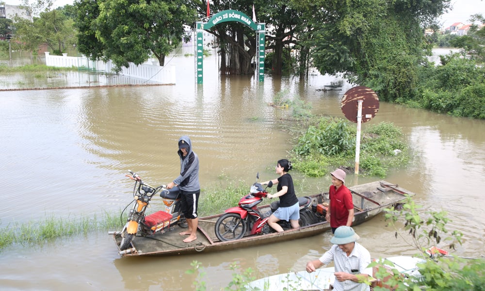 Vattnet i Cau-floden har dragit sig tillbaka, men stadsdelen Qua Cam i Kinh Bac-distriktet är fortfarande djupt översvämmat, vilket gör det svårt för människor att resa. |