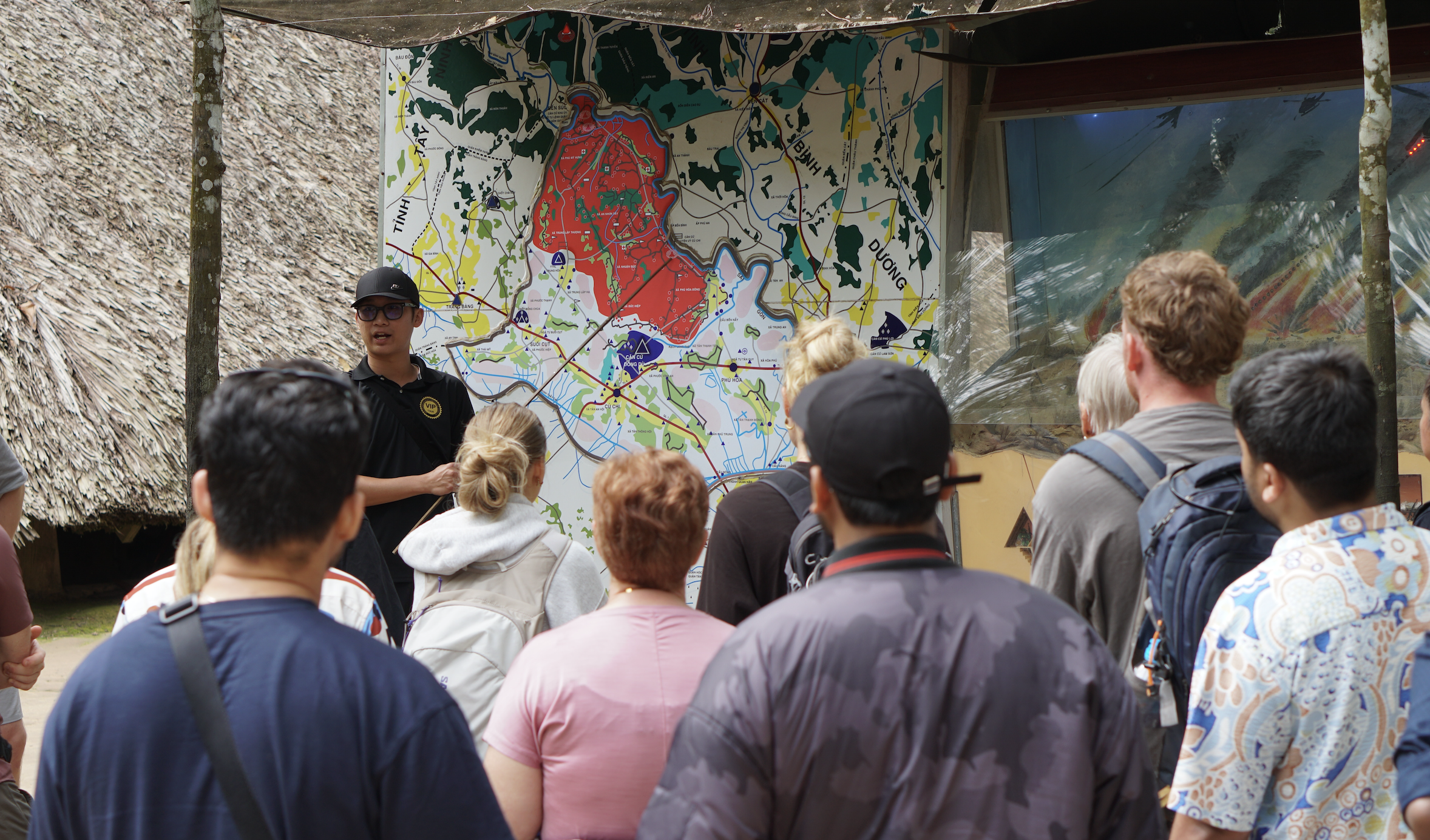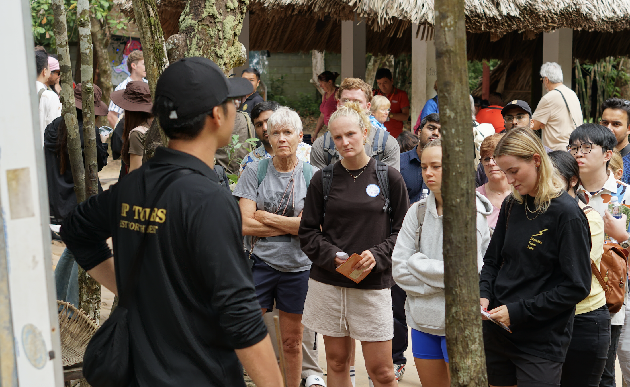 Men den största attraktionen för internationella turister är inte bara besöket i tunnlarna, utan även reseguiderna här. Unga, professionella, flytande i främmande språk, många av dem kan tala 2-3 språk som engelska, kinesiska, koreanska... med ett livligt, engagerande och känslosamt sätt att berätta historier, vilket får alla från äldre till unga i turgrupperna att lyssna uppmärksamt på varje ord.