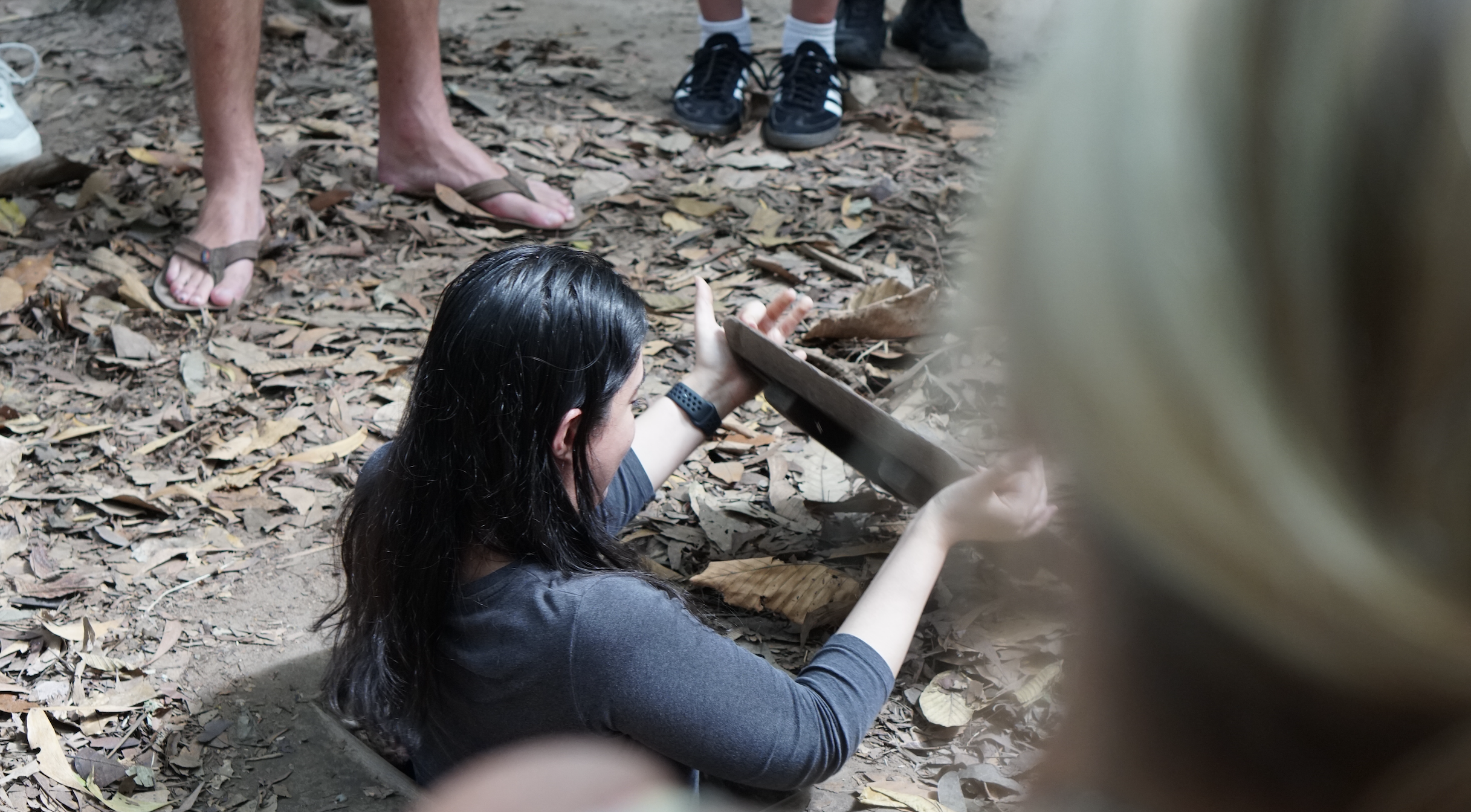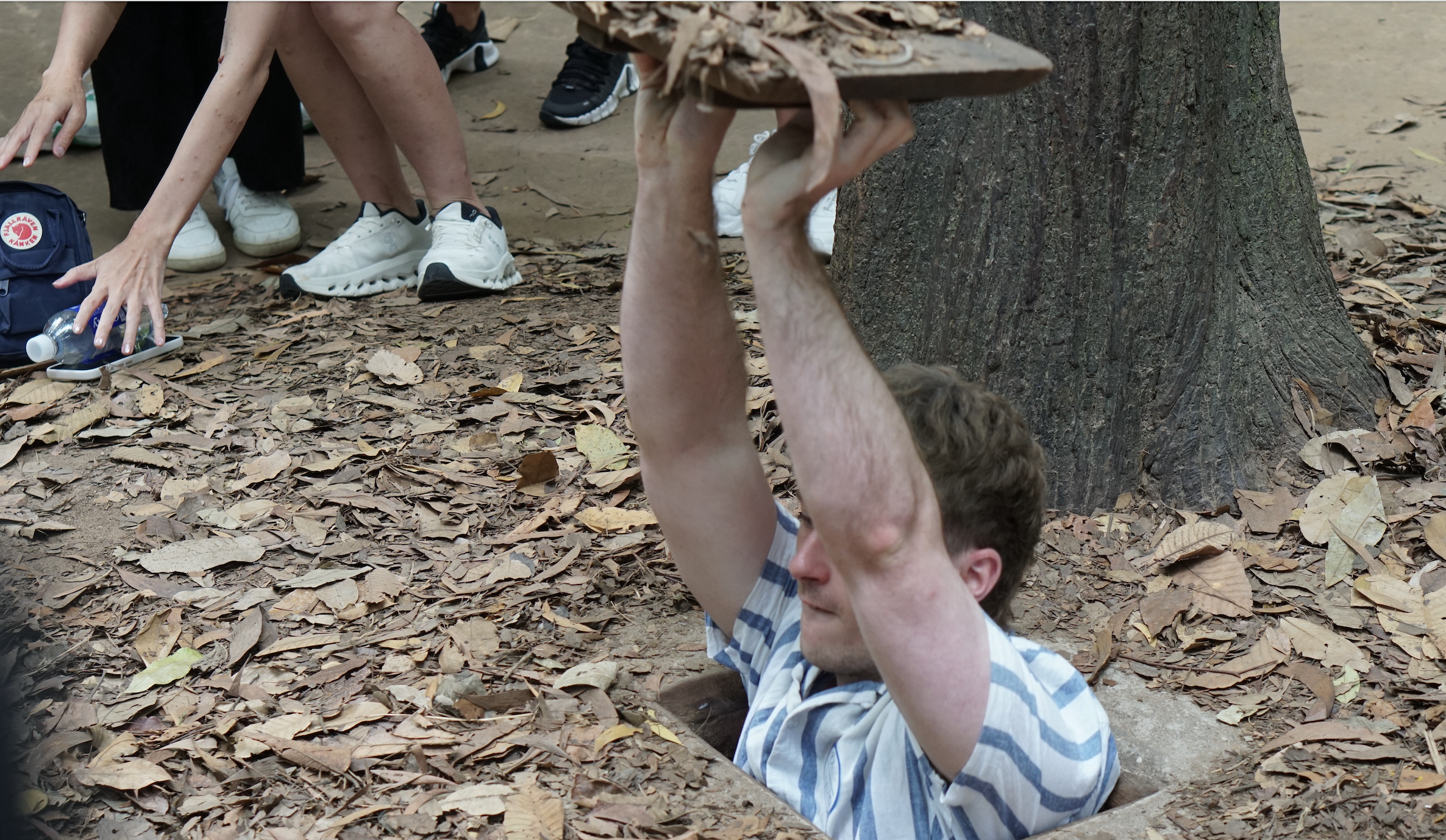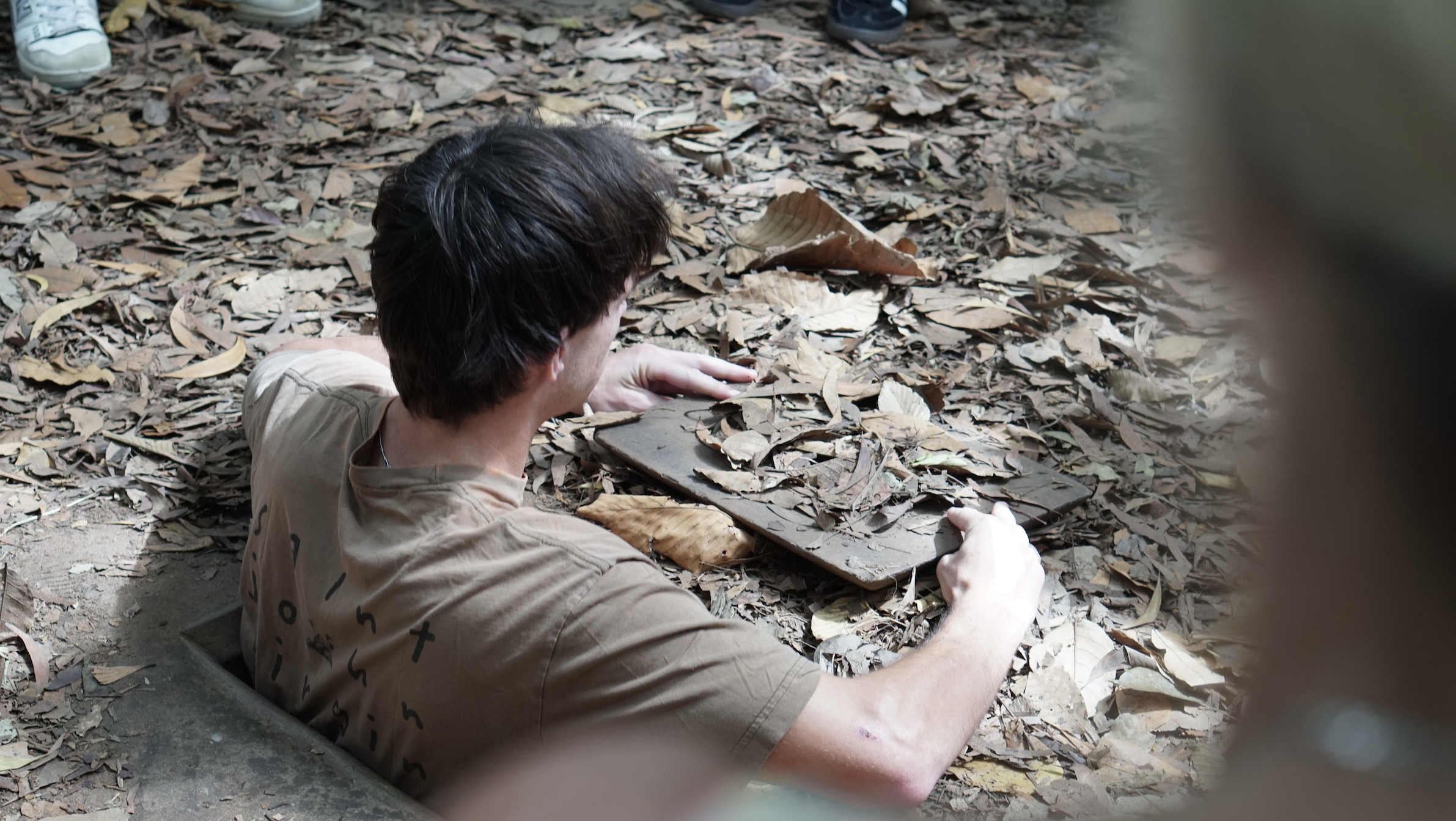 Samtidigt höll Marks vänner fortfarande i sina telefoner för att spela in ögonblicket när han kröp in i tunneln, täckte den med kamouflagelöv och kom ut mitt bland jubel. Bara några minuter senare publicerades klippet direkt på TikTok med bildtexten: "Utmaningen att krypa genom Cu Chi- tunnlarna i Vietnam är mycket svårare än man kunnat föreställa sig!". Förutom Mark tittade många andra turister också på videon och skrattade, och delade snabbt sina känslor på sociala medier.