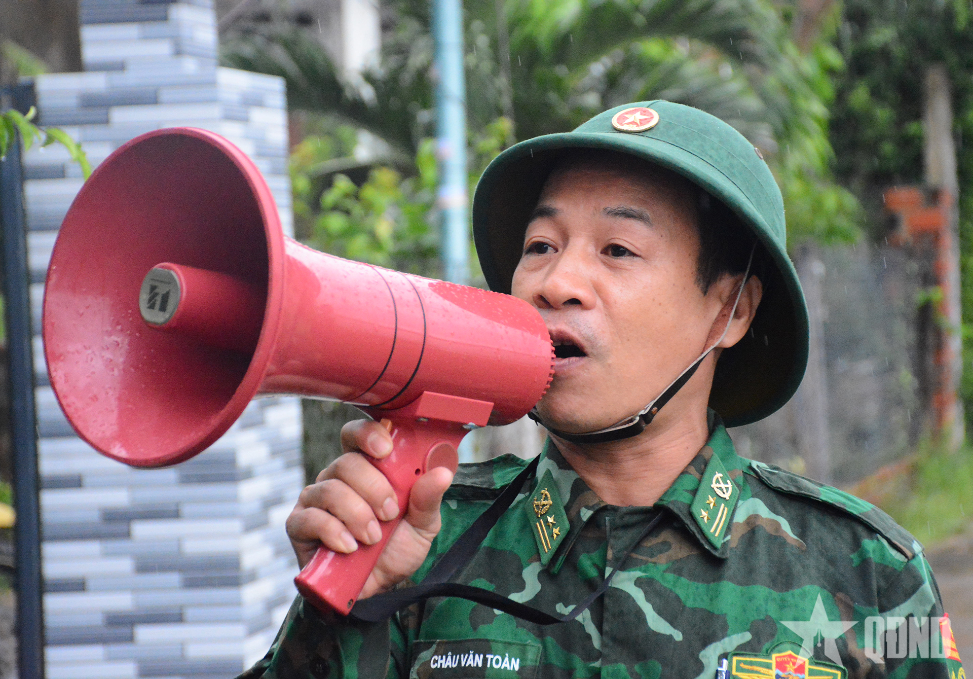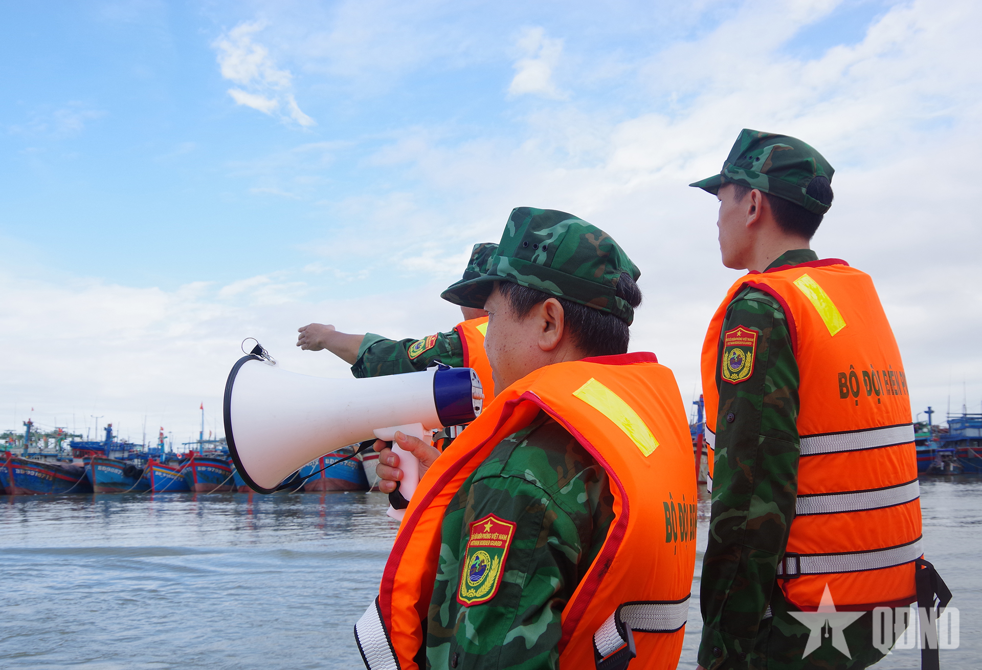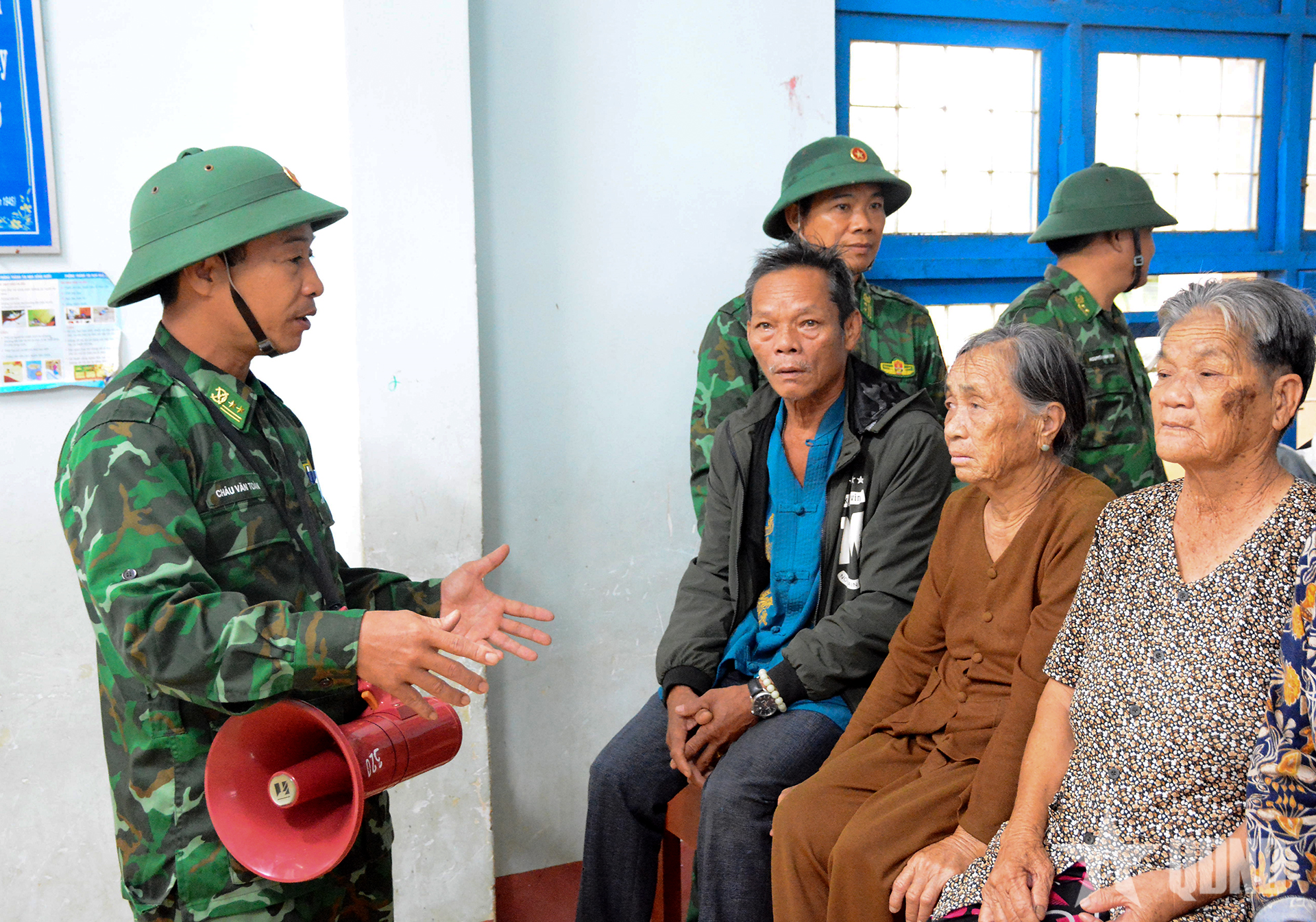 | Gränsbevakningen i Gia Lai -provinsen sprider information till människor om storm nr 13. |