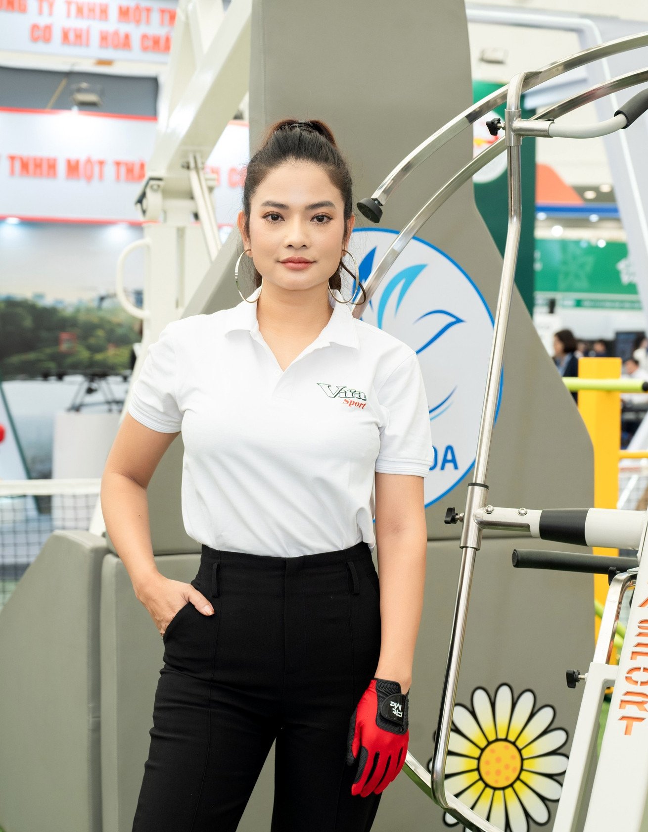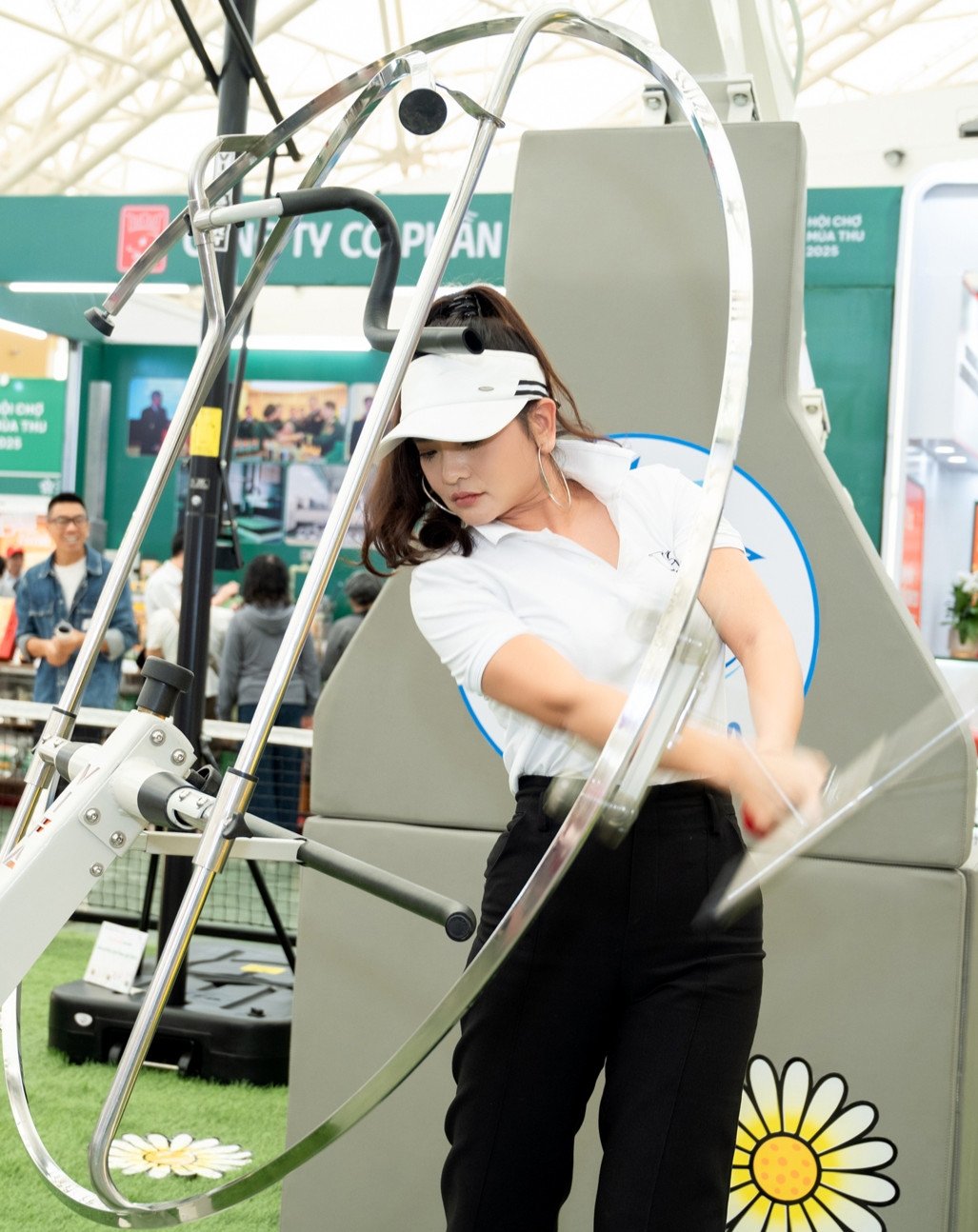 På höstmässan 2025 väckte skådespelerskan uppmärksamhet när hon dök upp i vit skjorta och sneakers , skickligt utförde golfrörelser på träningsramen och instruerade gästerna i svåra övningar, vilket gjorde denna ädla sport enklare i många människors ögon.