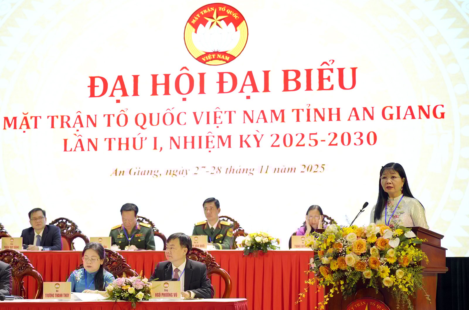 I sitt tal vid kongressens öppnande betonade kamrat Tran Thi Thanh Huong att kongressen, med mottot "Solidaritet - Demokrati - Innovation - Kreativitet - Utveckling", är en viktig milstolpe som visar viljan, ambitionen och beslutsamheten hos det stora nationella solidaritetsblocket i An Giang-provinsen i den nya utvecklingsperioden.