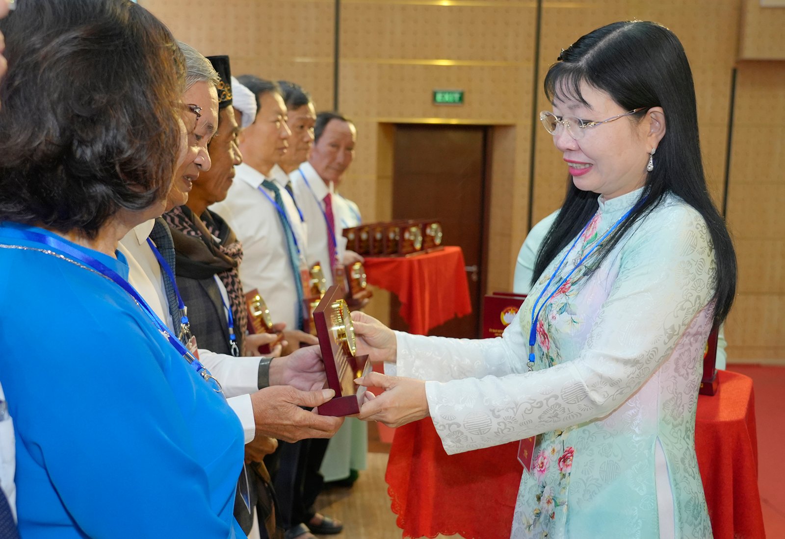 Kamrat Tran Thi Thanh Huong överlämnade gåvor för att tacka de medlemmar som inte fortsatte att delta i provinsens Vietnams fosterlandsfrontkommitté, mandatperiod I, 2025-2030.