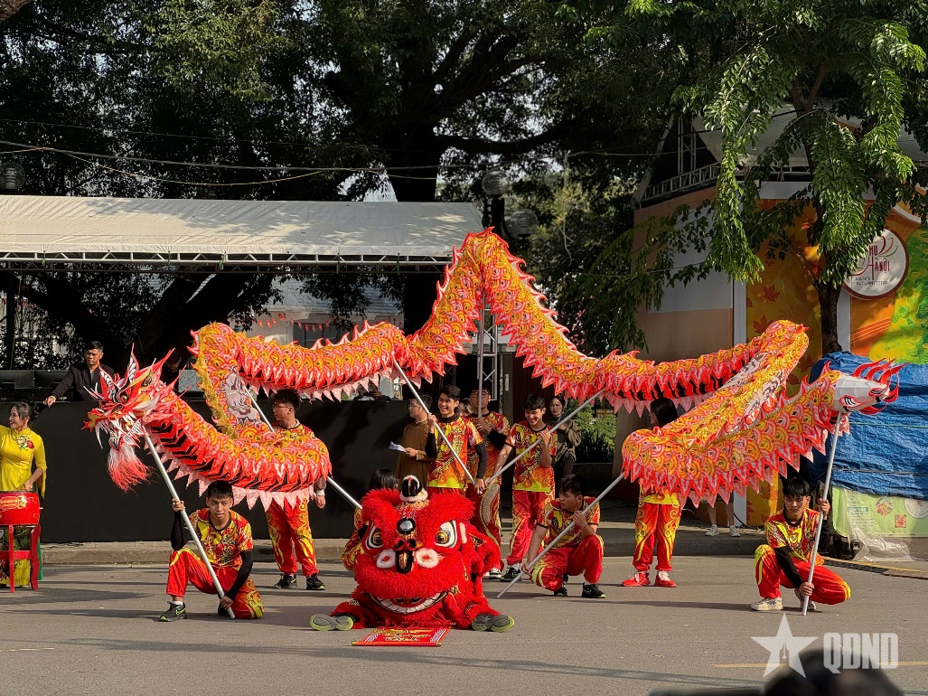 | Programmet inleddes med uppträdanden av Thanh Oai Lion - Dragon - Unicorn Club och studentdansgruppen från Hanois kulturuniversitet. |