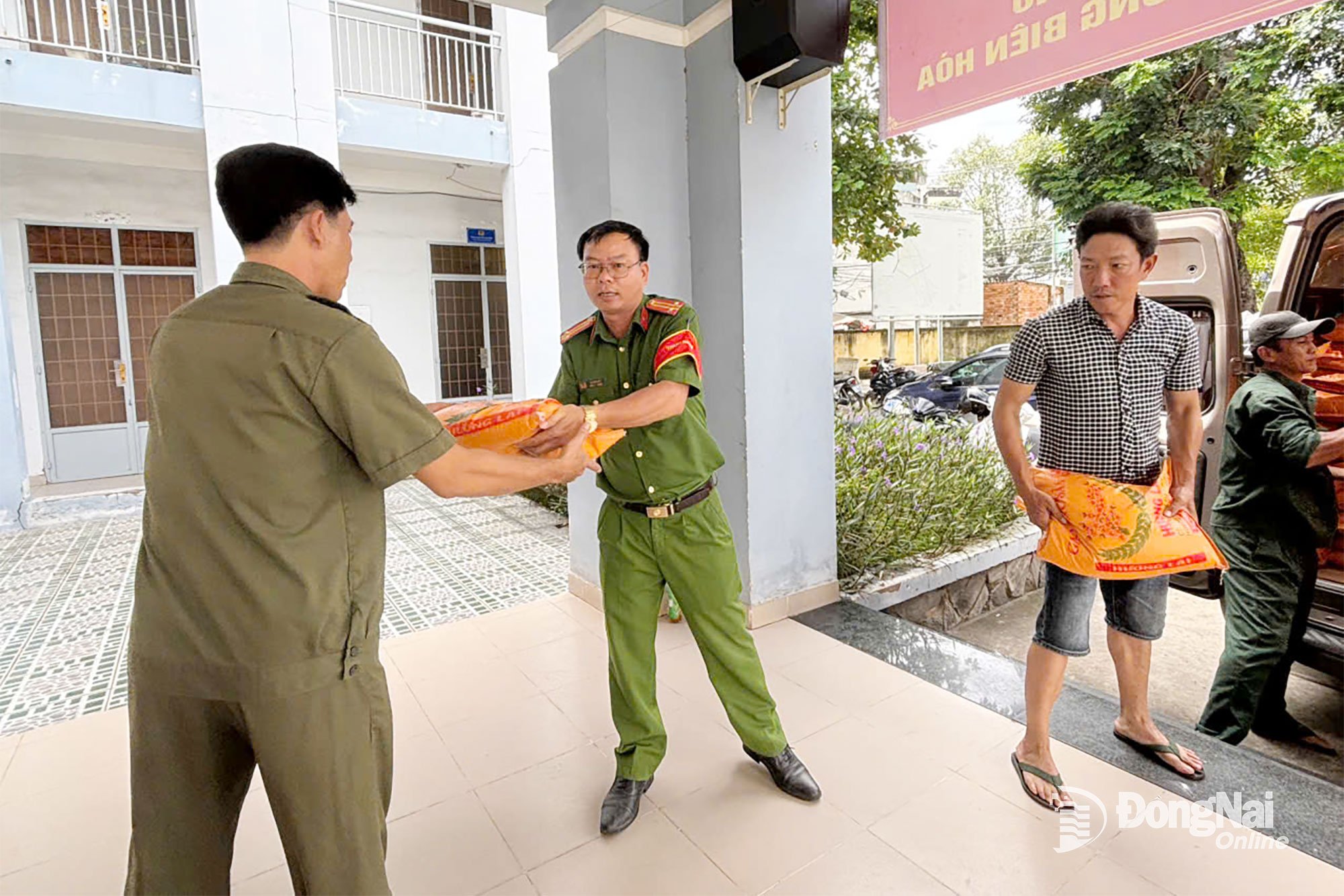 Den 23 november utplacerade polisen i nio distrikt, inklusive Bien Hoa, Tran Bien, Tam Hiep, Long Binh, Trang Dai, Ho Nai, Long Hung, Phuoc Tan och Tam Phuoc, därför mottagningspunkter för att ta emot varor och förnödenheter som skickats av människor och företag för att stödja de som drabbats av översvämningarna i den centrala regionen.