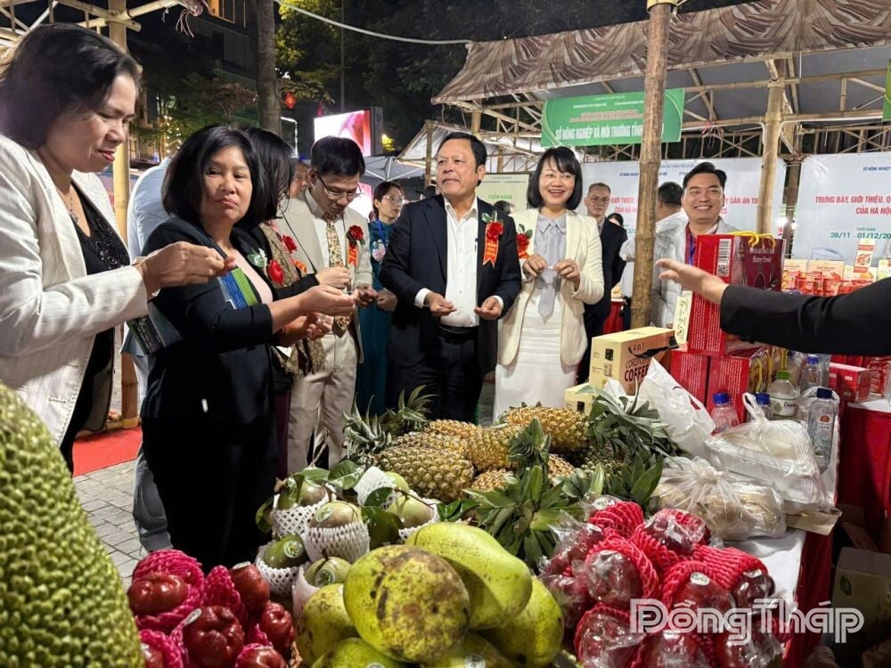 Under varuveckan visade departementet upp en mängd olika viktiga och enastående produkter från provinsen, inklusive: Specialfrukter som Cat Chu-mango, Cat Hoa Loc-mango, thailändsk jackfrukt, Ido longan, grönskalig grapefrukt, drakfrukt, ananas... utvalda från standardodlingsområden med elektronisk spårbarhet (Vinh Kim Cooperative). OCOP-produkter såsom: Produkter bearbetade från lotus, torkad frukt (Nam Huy Dong Thap Company Limited), cordyceps (Thien An Cordyceps Joint Stock Company), honung-citronsaft (My Long Cooperative), produkter bearbetade från fågelbo (Tri Son Trading and Service Company Limited). I synnerhet fortsätter den torkade lotusfröprodukten - 5-stjärniga nationella OCOP - att skapa en höjdpunkt tack vare sin höga kvalitet, moderna förpackning och den karakteristiska smaken från Rosa Lotuslandet.