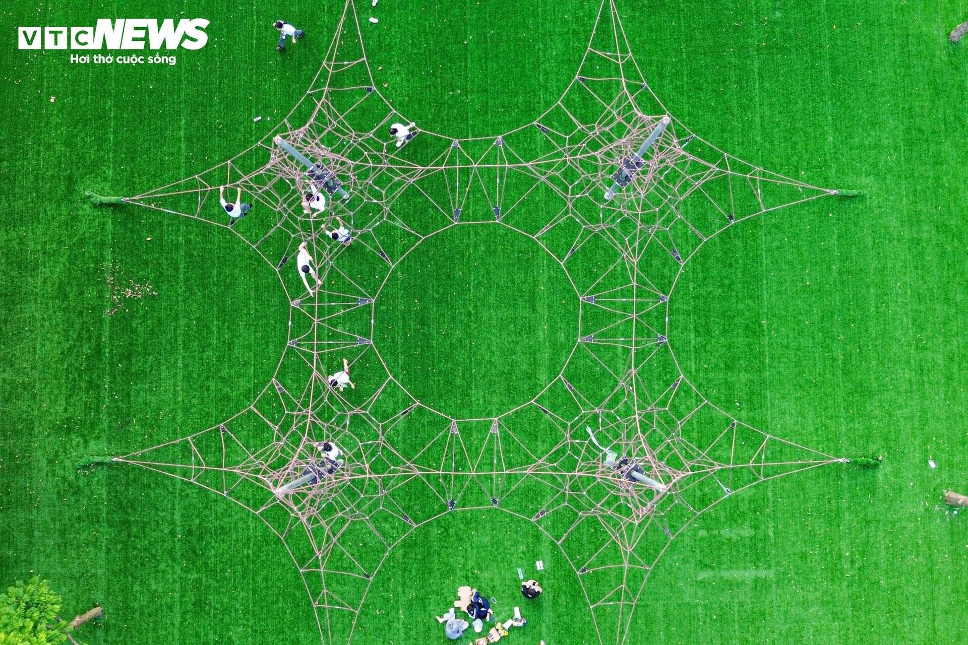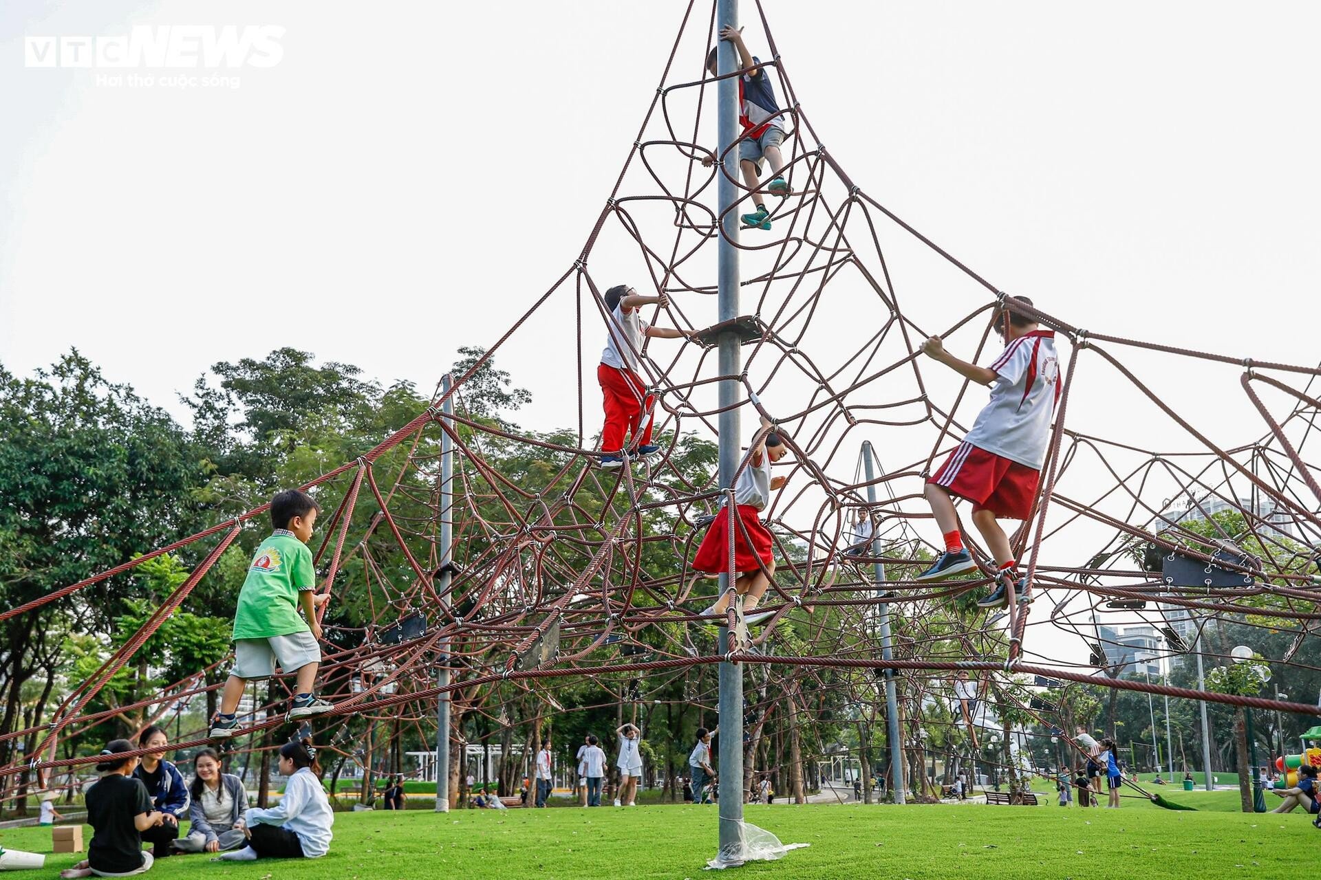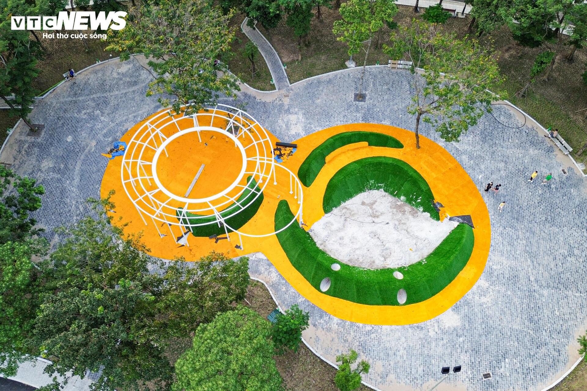 Cau Giay-parken är över 6 500 kvadratmeter bred, med en investering på 66 miljarder VND för att renovera nedbrutna föremål. Efter 8 månaders byggnation har parken ett rymligt, modernt och grönt utseende.