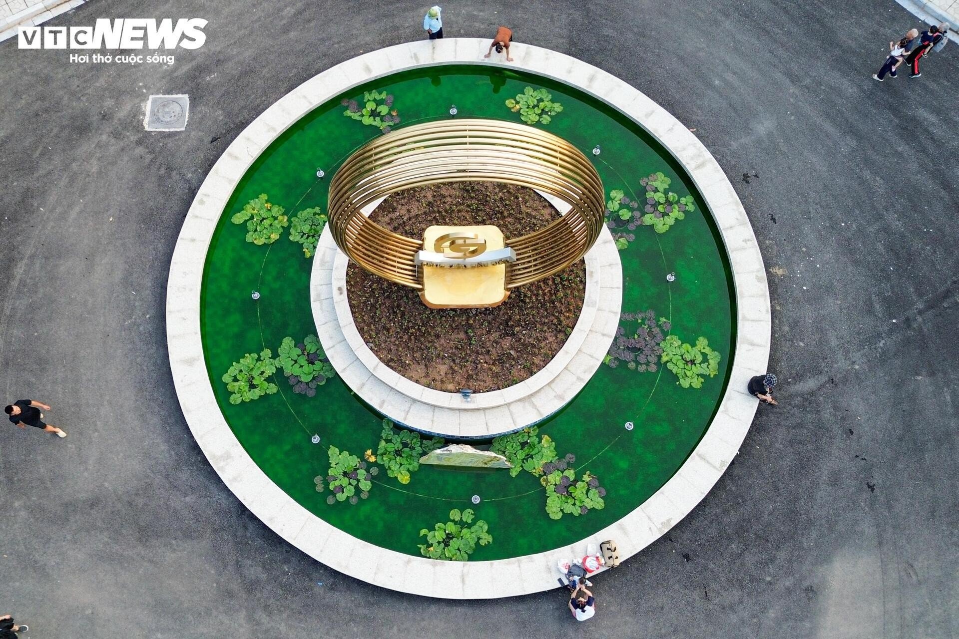 Den nyinstallerade konstnärliga fontänen och logotypen har blivit en imponerande arkitektonisk höjdpunkt som bidrar till Cau Giay-parkens moderna och livfulla utseende.