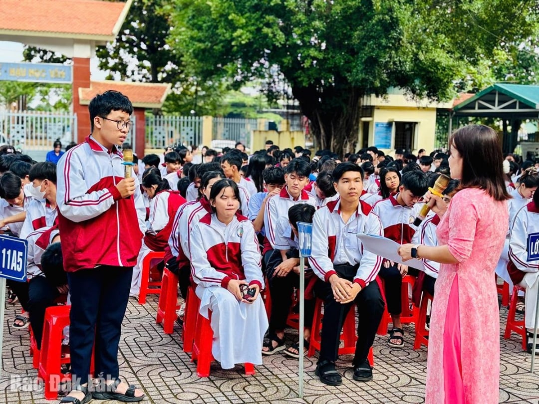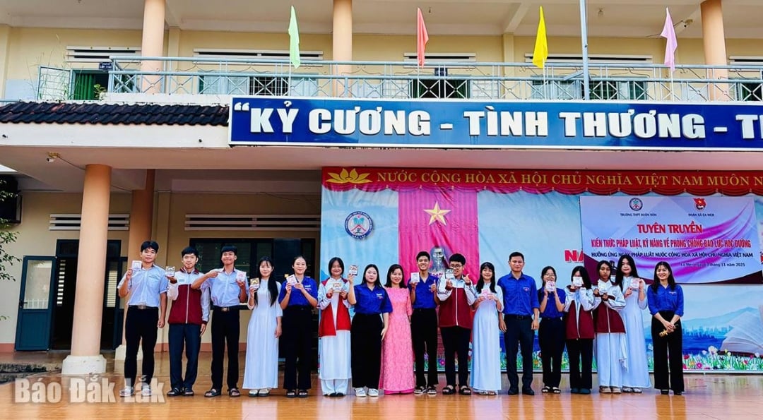 Tran Vinh Trung, biträdande rektor för Buon Don High School, berättade att hela skolan har 985 elever, varav etniska minoriteter står för cirka 44,5 %. Med förståelse för elevers psykologi i vuxen ålder samordnar skolan regelbundet för att sprida lagen genom att utrusta eleverna med kunskaper inom cybersäkerhet, drogförebyggande och -kontroll, skolvåld, trafiksäkerhet, brandskydd och brandbekämpning etc. Propagandaaktiviteter upprätthålls regelbundet genom fritidsaktiviteter eller integreras i aktiviteter, lektioner och föreläsningar. Tack vare detta har situationen med konflikter och vanliga disciplinära brott i skolan minskat avsevärt.
