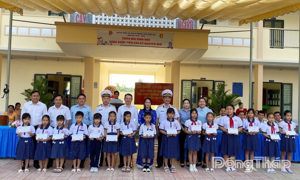 Samtidigt delade marinskvadron 129 ut 15 gåvor till elever som övervunnit svårigheter och klarat sig bra på Nguyen Thi Tot Primary School.
