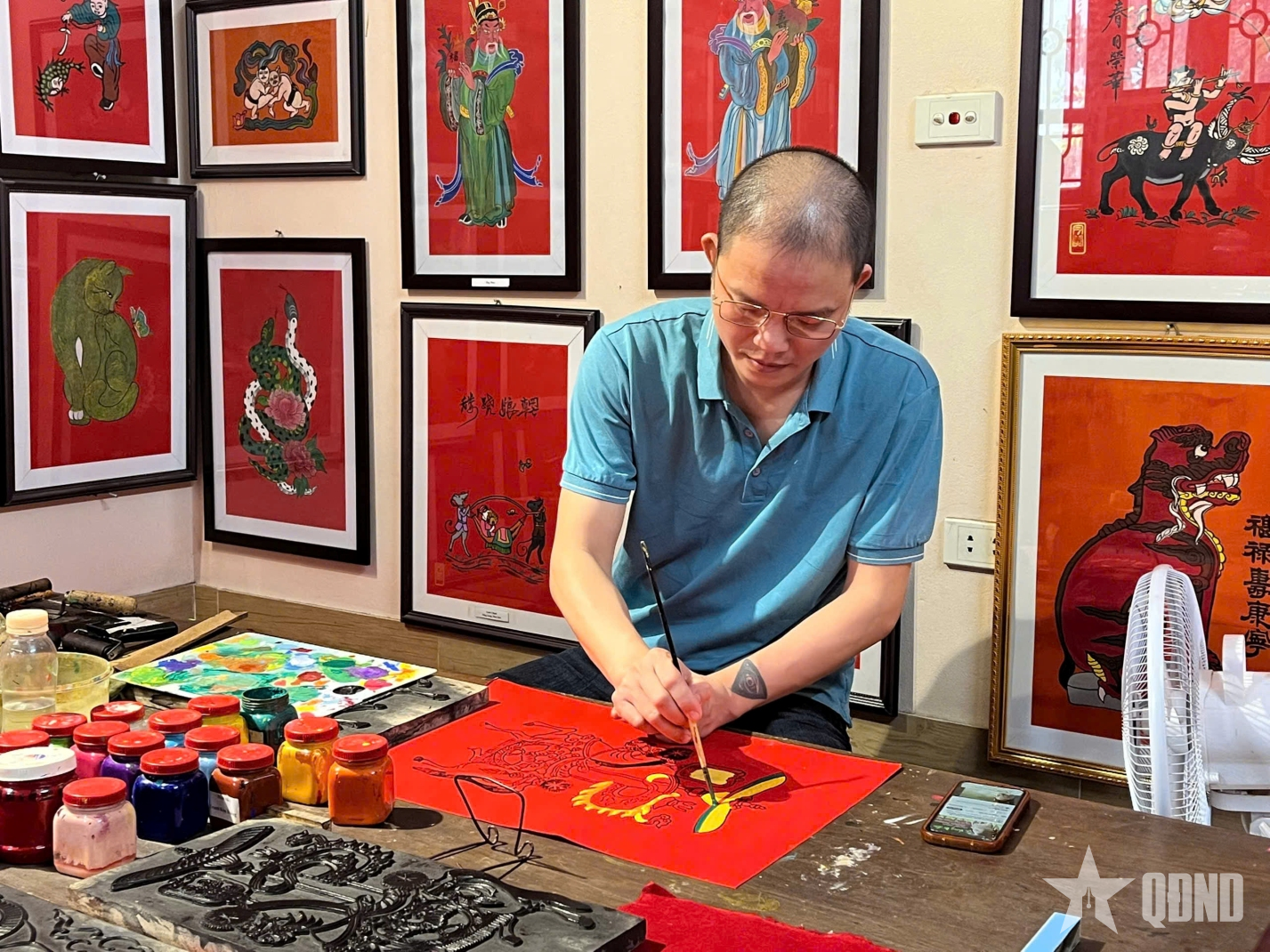 Han restaurerade inte bara hantverket, utan öppnade också ett utrymme för att uppleva Kim Hoangs målningar och välkomnade studenter, studenter och turister att prova på tryck och måleri. Konstnären tror att det är först när unga människor kan röra vid träklossarna och se färgerna framträda på dem som de verkligen kan känna värdet av arvet.