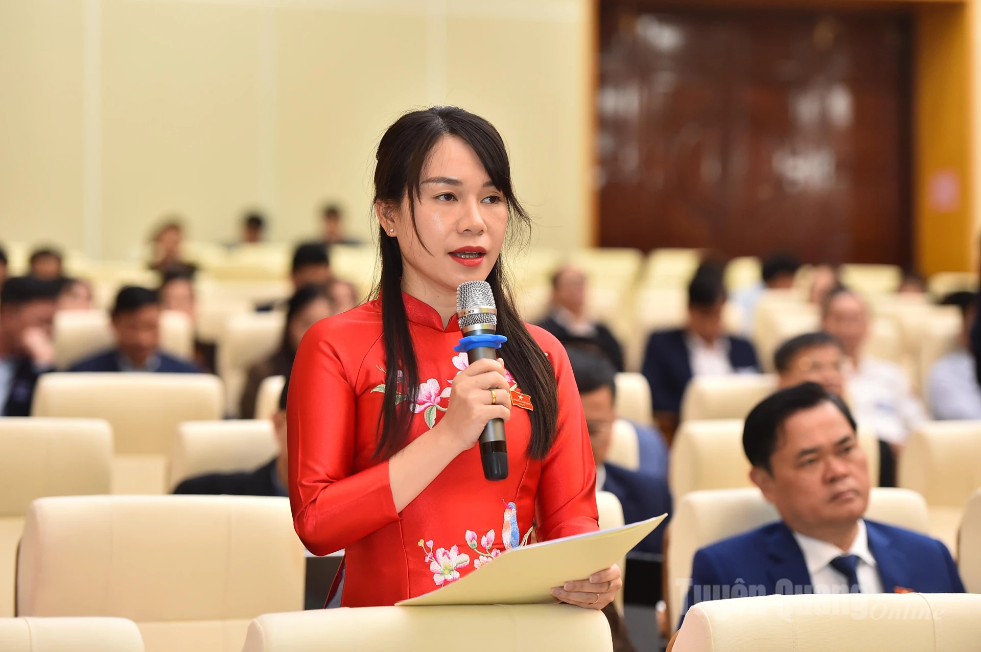 Diskussionssessionen leddes av följande kamrater: Nguyen Van Son, biträdande sekreterare i den provinsiella partikommittén och ordförande för det provinsiella folkrådet; Hau Minh Loi, medlem av den provinsiella partikommitténs ständiga kommitté och ständig vice ordförande i det provinsiella folkrådet; Pham Thi Minh Xuan, medlem av den provinsiella partikommitténs ständiga kommitté och vice ordförande i det provinsiella folkrådet; och Le Thi Thanh Tra, medlem av den provinsiella partikommittén och vice ordförande i det provinsiella folkrådet.