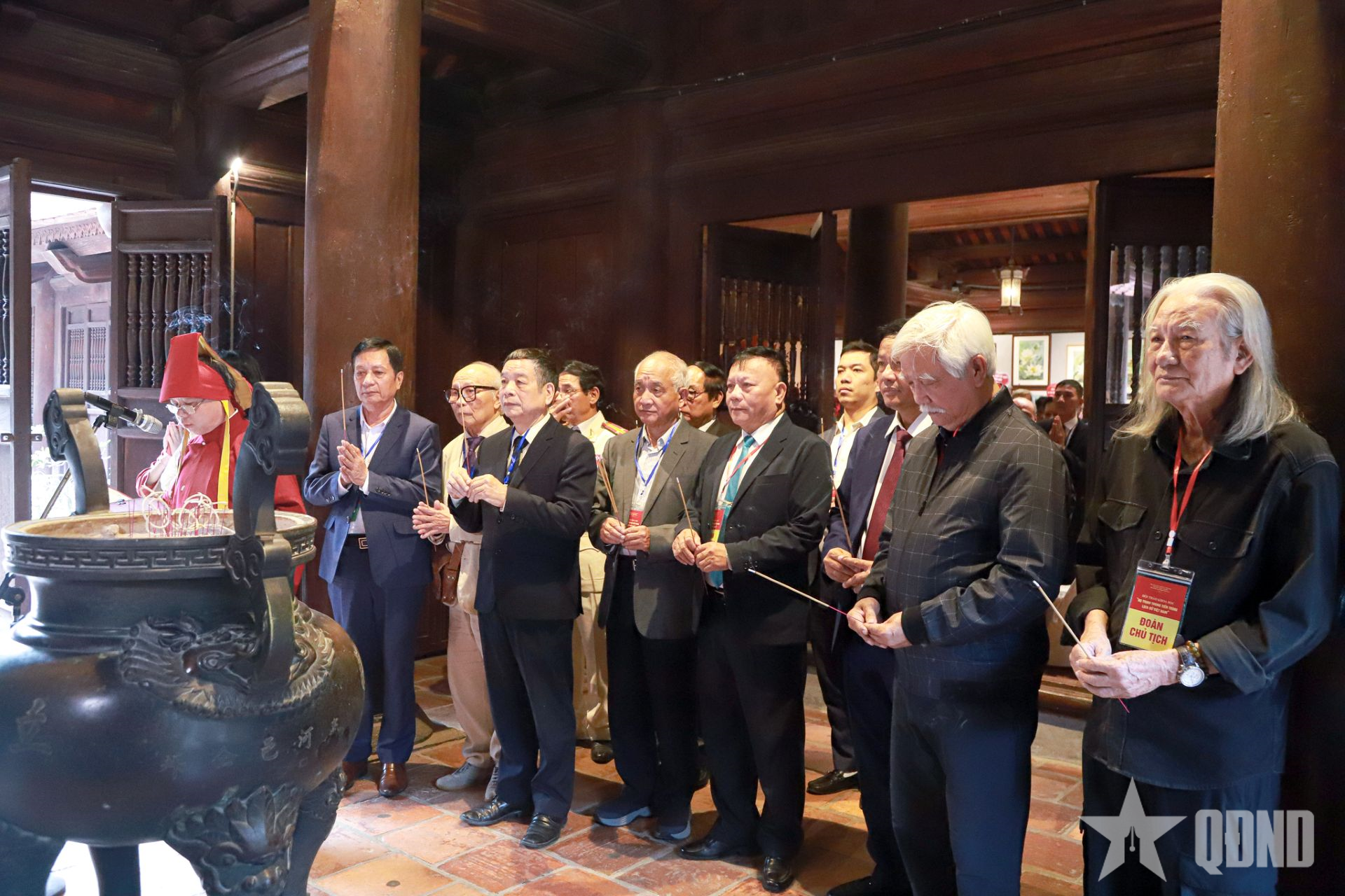 | Delegaterna offrade rökelse för att hedra Trinh-förfäderna. |