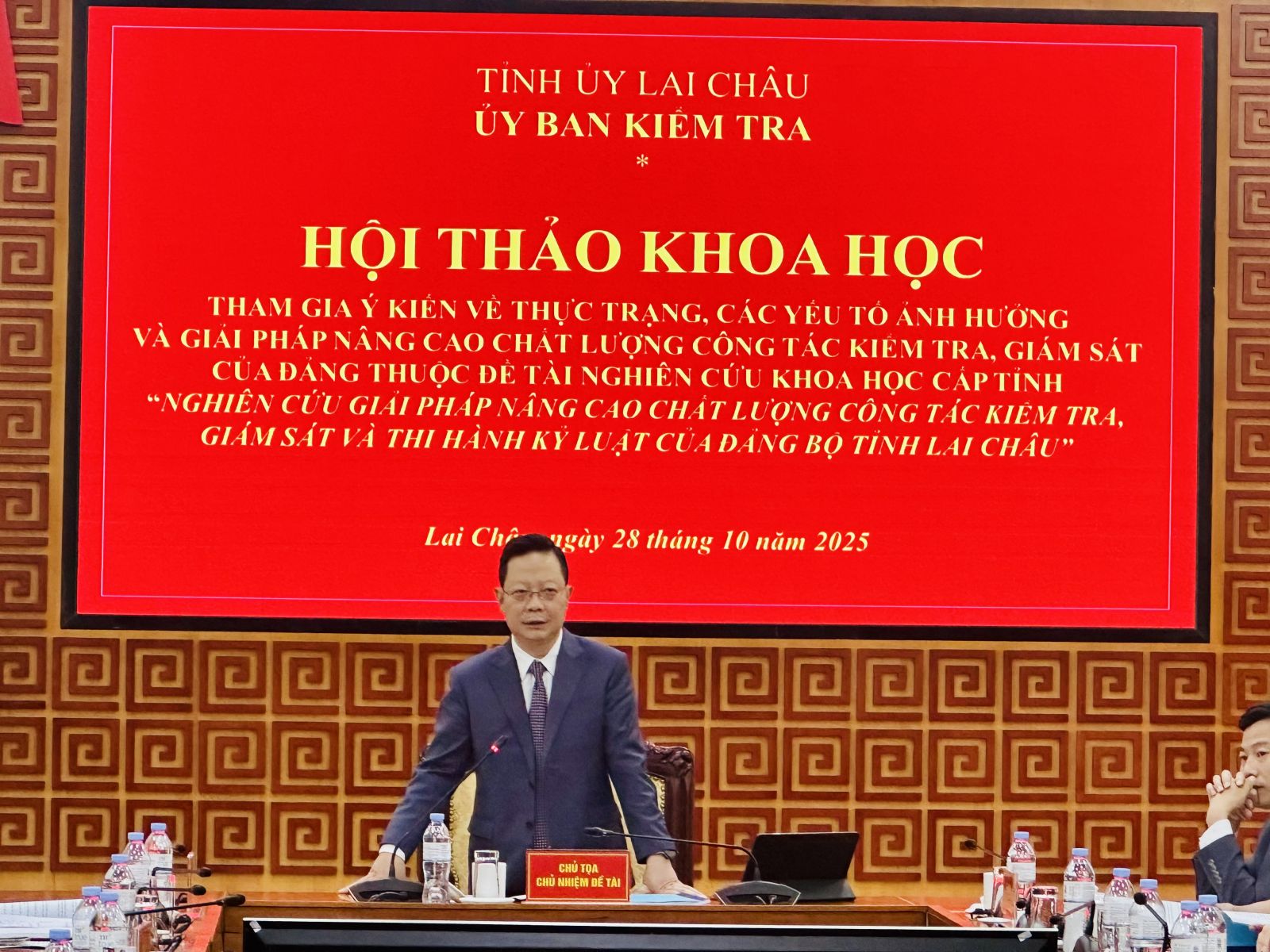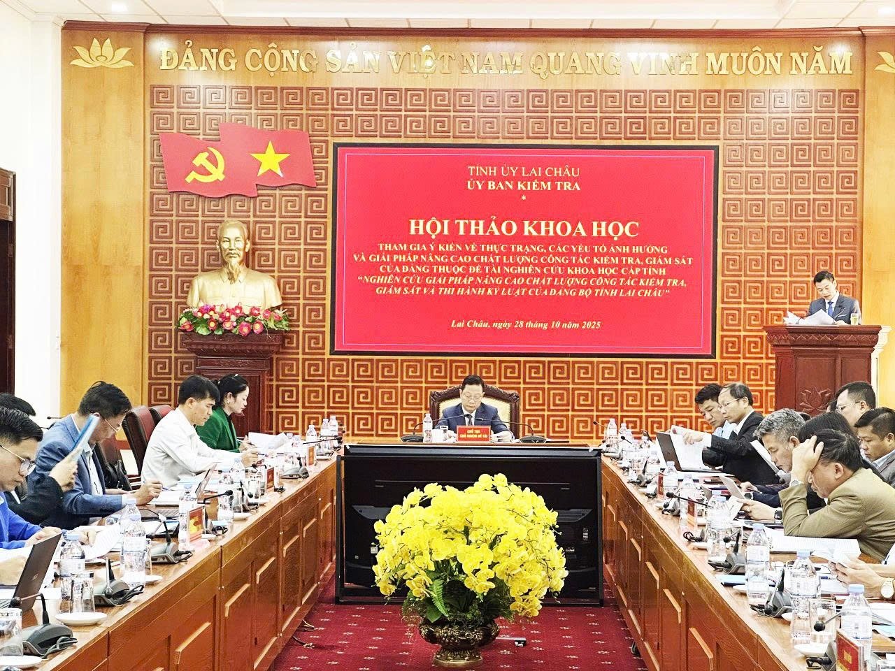 På workshopen lyssnade deltagarna på sex presentationer: Rollen av medvetenhet om partikommittéernas ansvar i att leda, styra och genomföra inspektions-, övervaknings- och partidisciplinarbete - Nuvarande status för orsaker och effekter på kvaliteten på inspektions- och övervakningsarbetet inom Lai Chaus provinsiella partikommitté; Analys av subjektiva och objektiva faktorer som påverkar inspektions-, övervaknings- och disciplinarbetet inom Lai Chaus provinsiella partikommitté på senare tid; Nuvarande status för anläggningar och organisation, personal i inspektionskommittén, inspektionskommittéorgan från provinsen till gräsrotsnivå - förhållandet till kvaliteten på inspektions-, övervaknings- och partidisciplinarbetet; Riktningar och uppgifter för inspektions-, övervaknings- och partidisciplinarbetet inom Lai Chaus provinsiella partikommitté under den kommande tiden; Lösningar för att förbättra kvaliteten på inspektionskommittéerna på alla nivåer när det gäller att ge råd till och hjälpa partikommittéerna att utföra inspektions-, övervaknings- och disciplinarbetet inom Lai Chaus provinsiella partikommitté; Lösningar för att förbättra kvaliteten på inspektions-, övervaknings- och partidisciplinarbetet inom partikommittéerna, gräsrotspartiinspektionskommittéerna och direkta överordnade inom Lai Chaus provinsiella partikommitté under den kommande tiden;