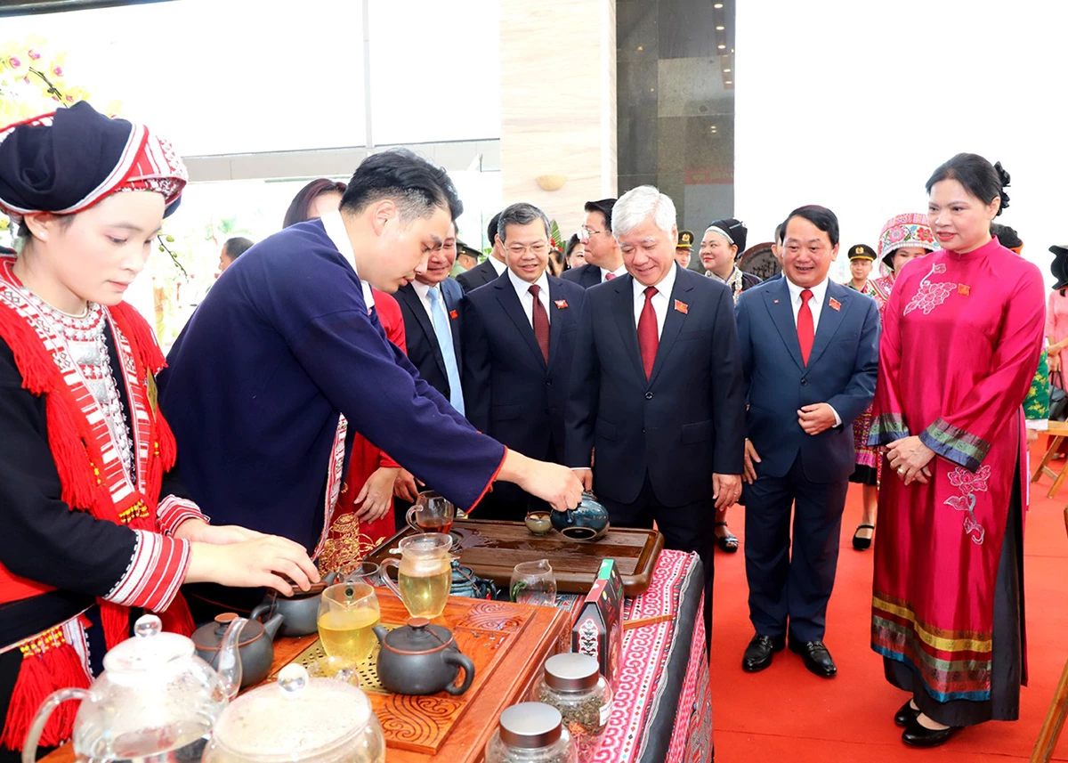 | Utrymmet för att visa upp OCOP-produkter och njuta av gammalt Shan Tuyet-te bidrog till den provinsiella partikongressens framgång. |