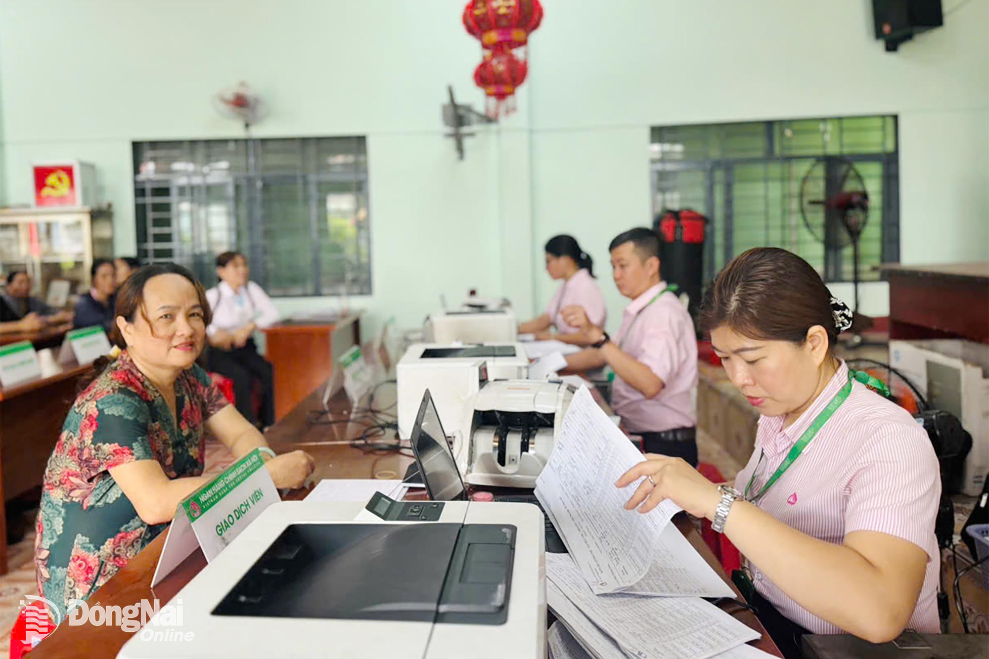 | Folk kommer för att göra transaktioner vid Trang Bom-transaktionspunkten som tillhör Trang Bom Social Policy Bank Transaction Office. Foto med tillstånd av |