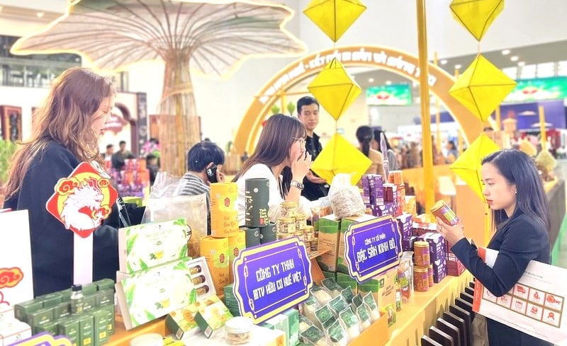 | 3-5-stjärniga OCOP-produkter från Hue City visas och introduceras på mässan (Foto: Nguyen Thao) |