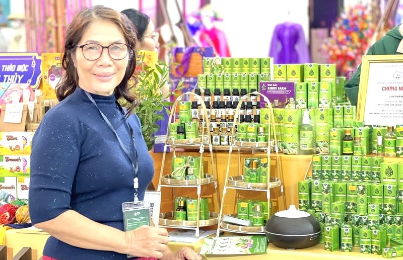 | Hue cajeput-oljeprodukter deltar i Hanoi höstmässa 2025 (Foto av Nguyen Thao) |