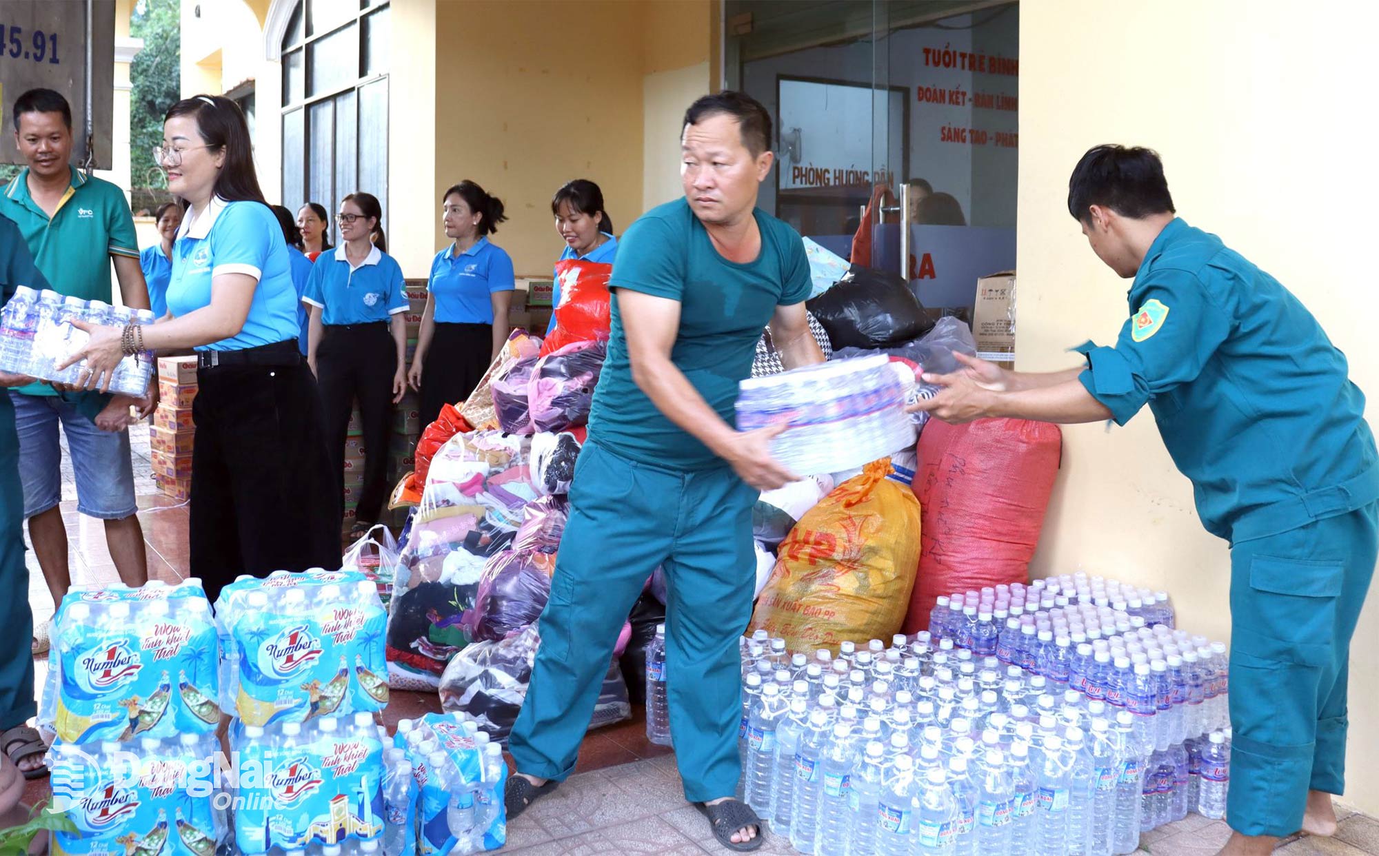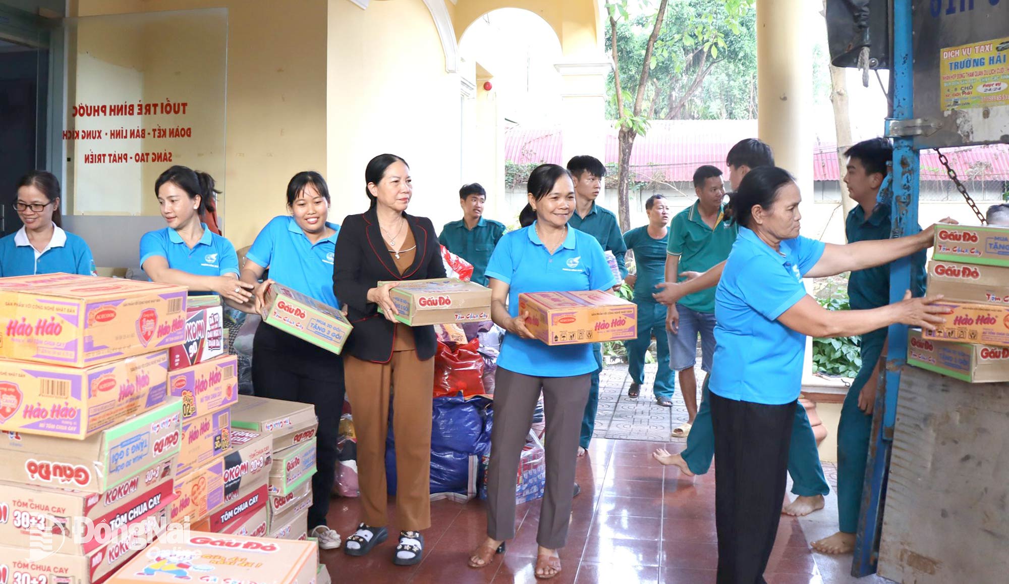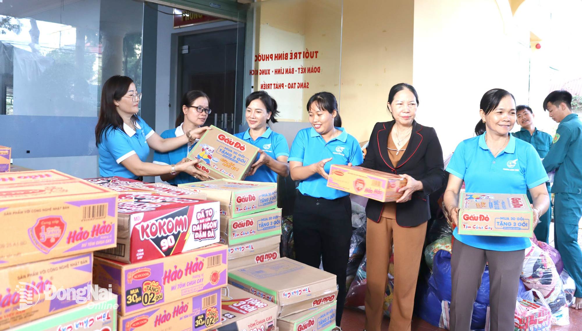 Ordföranden för Dong Xoai-distriktets kvinnoförbund, Hoang Lan Anh, sa: "Med tanke på den förödelse som naturkatastrofer orsakat och de stora skadorna i alla avseenden i de centrala provinserna, uppmanade facket den 23 november alla kadrer och medlemmar i fackföreningsavdelningarna i hela distriktet att stödja med andan att "hela lövet täcker det sönderrivna lövet", "en bit mat när man är hungrig är värd ett paket när man är mätt". Inom en dag mobiliserade facket totalt 2 ton ris, 210 kartonger snabbnudlar, 30 kartonger mjölk, 130 kartonger mineralvatten och många förnödenheter, kläder, varor, med totalt över 4 ton av alla slag."