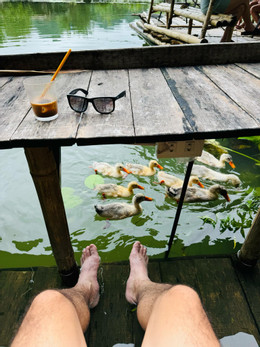 Området kring Buffalo Cave skonades inte, så även kaféutrymmet bredvid den stora dammen där turister ofta sitter översvämmades. Därför har västerländska besökare som kommer hit möjlighet att uppleva den intressanta kafémodellen under regniga dagar, med ankor som simmar runt vid deras fötter.