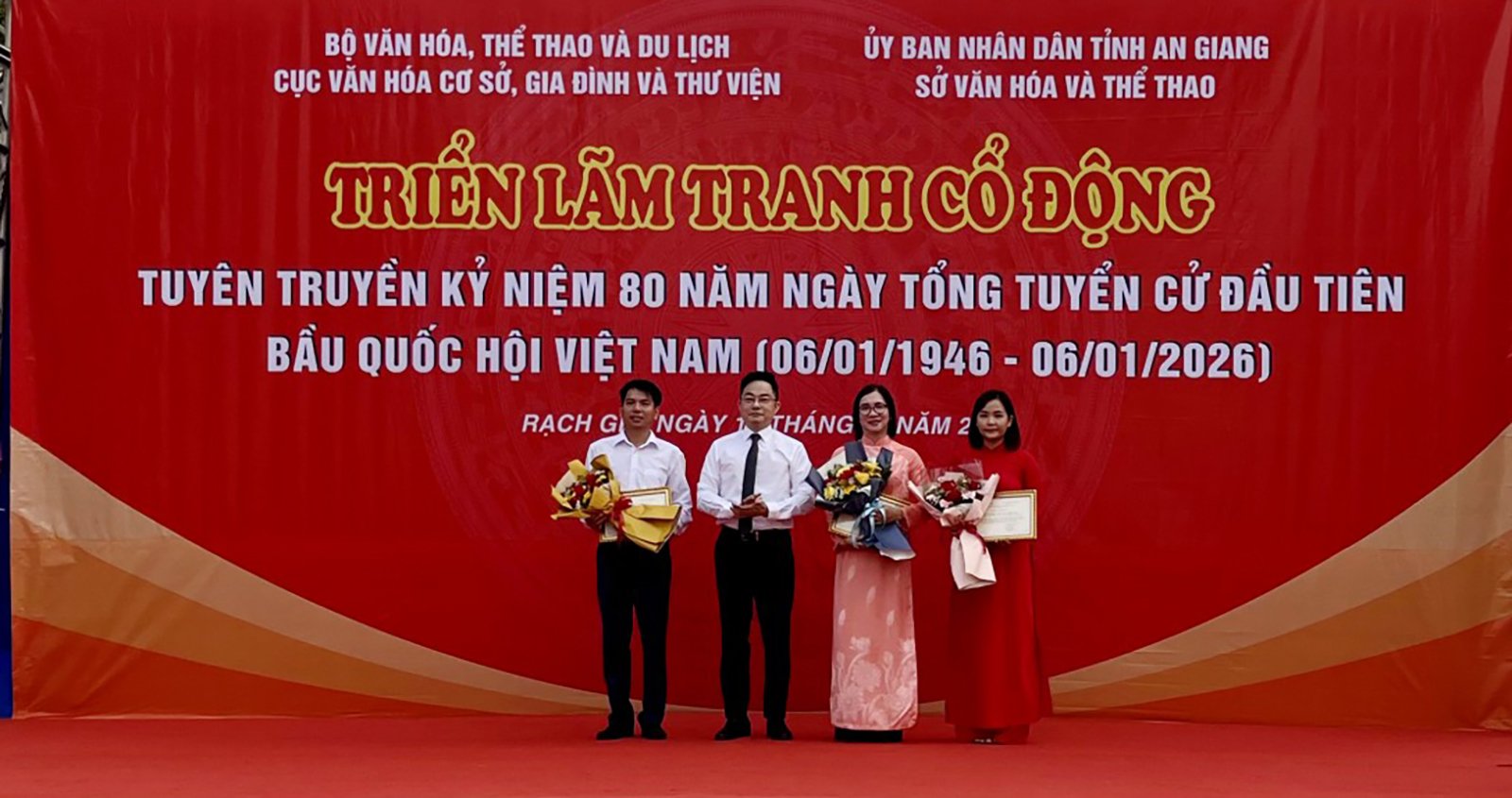 Biträdande direktör för avdelningen för gräsrotskultur, familj och bibliotek, Nguyen Quoc Huy, delade ut intyg till avdelningen för information, propaganda och film och individer med prestationer inom utställningskoordinering.